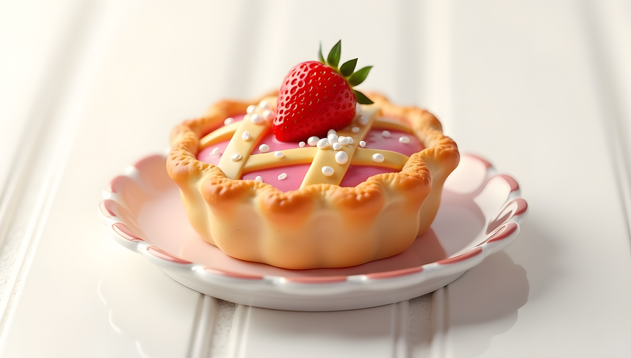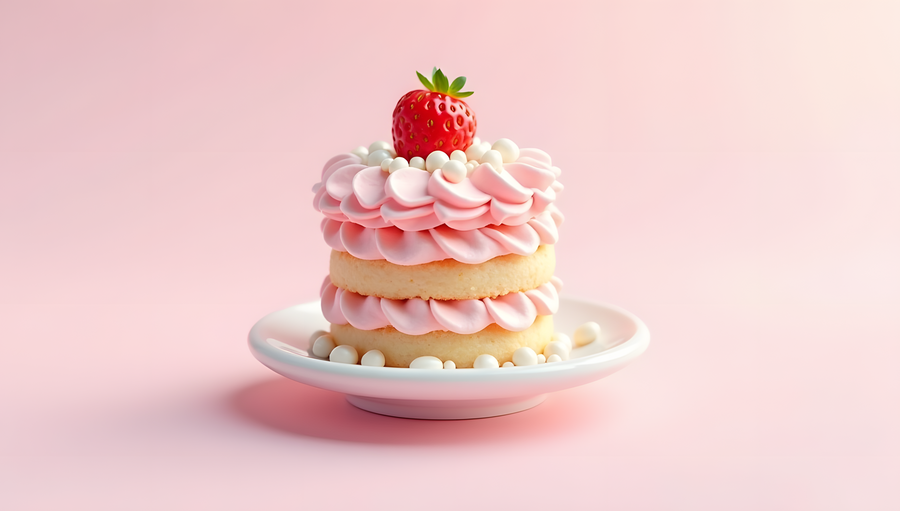 2. Дизайн и материалы Цветовая гамма: пастельно-розовый (основной) и белый. Акценты: жемчужная посыпка, миниатюрная клубника. Материал: фотополимерная смола (SLA/DLP) с матовым финишем — для детализации. Альтернатива — PLA с обязательной покраской. Поверхности: передача характерных текстур — воздушность бисквита, глазурь, крем, решётка пирога.