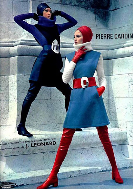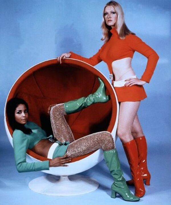 Параллельно с гендерной нейтральностью в 60-е возник сильный интерес к космическим формам — стиль «Space Age». Его главные дизайнеры Courrèges и Paco Rabanne экспериментировали с новыми материалами: пластиком, винилом, металлом, добавляя геометрию.