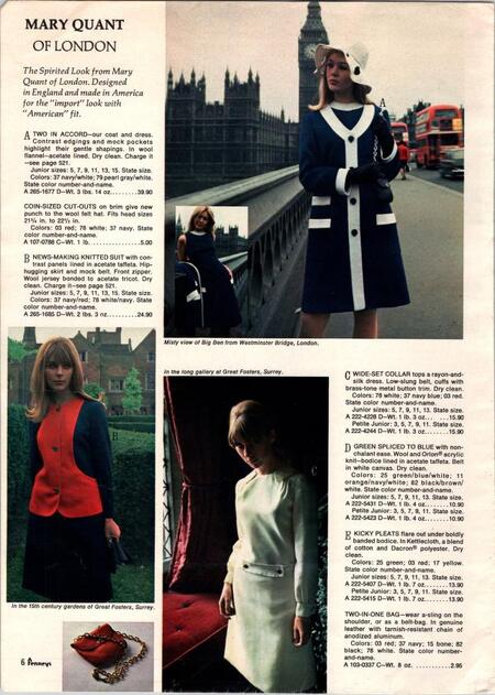 «Мэри Куант переключилась на собственное производство и начала продавать вещи, сшитые на основе выкроек Butterick Paper Patterns Company, которые она меняла по своему вкусу. Став успешной, Куант разработала для Butterick Paper Patterns Company коллекцию выкроек — так ее дизайны стали доступнее для еще более широкой аудитории, в том числе для тех, кто не мог позволить себе купить готовые вещи Mary Quant.»⁴