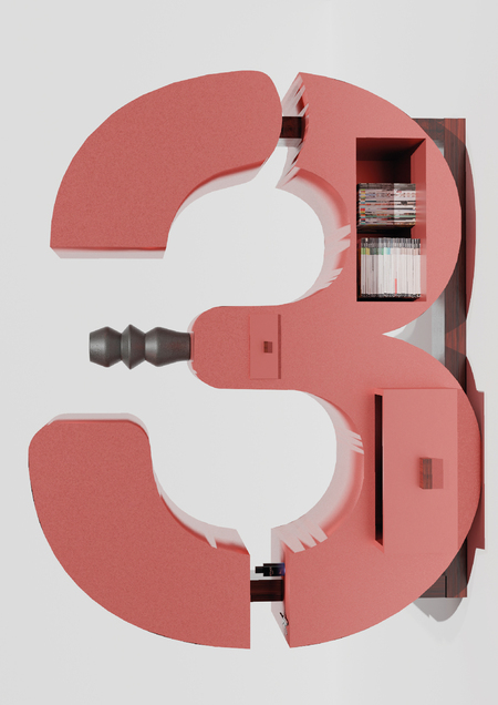 Концепция представляет собой предмет мебели, геометрия которого основана на формах модульного шрифта и повторяет очертания кириллической буквы «З». Плавные и динамичные изгибы буквы воплощены в декоративном комоде. Модель оснащена двумя выдвижными ящиками и одной глубокой полкой.