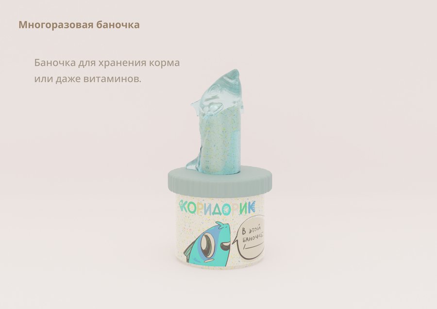 «Коридорик» — бренд кормов, полезных добавок, оборудования и аксессуаров для аквариумистики. В основе философии бренда — экологичность, а также внимательное и бережное отношение ко всему, что связано с нашими маленькими чешуйчатыми друзьями. Дружелюбная стилистика ориентирована на широкую аудиторию и помогает донести идею ответственного и заботливого аквариумоводства.
