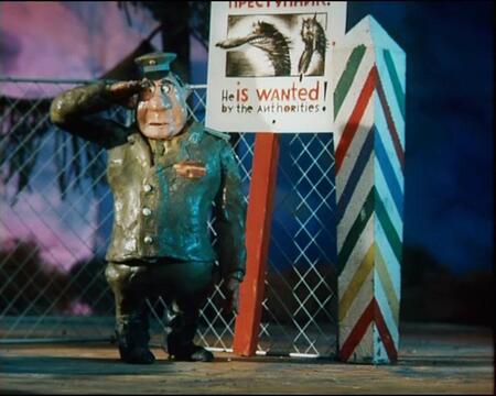 Особенно показателен эпизод, в котором Волк проходит через границу и «бравые» пограничники пропускают его за взятку, невзирая на плакат рядом с ними, в котором сообщается о том, что Волка разыскивают, что он рецидивист.