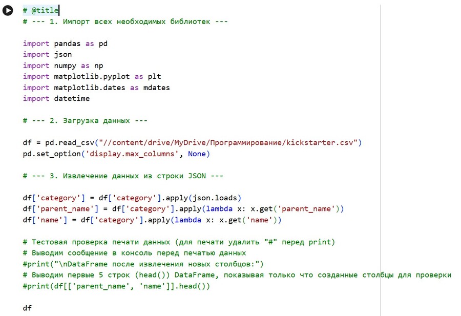 Данные были загружены из файла CSV. Дополнительно понадобилось извлечь данные из строки JSON.