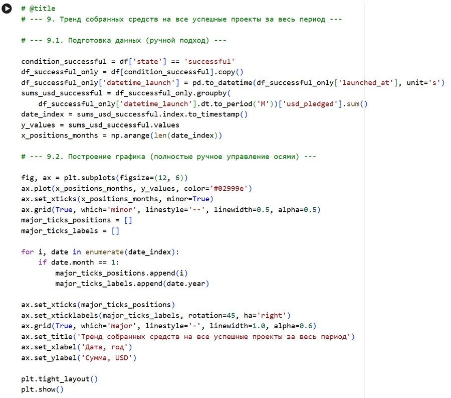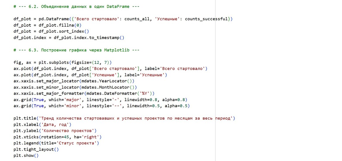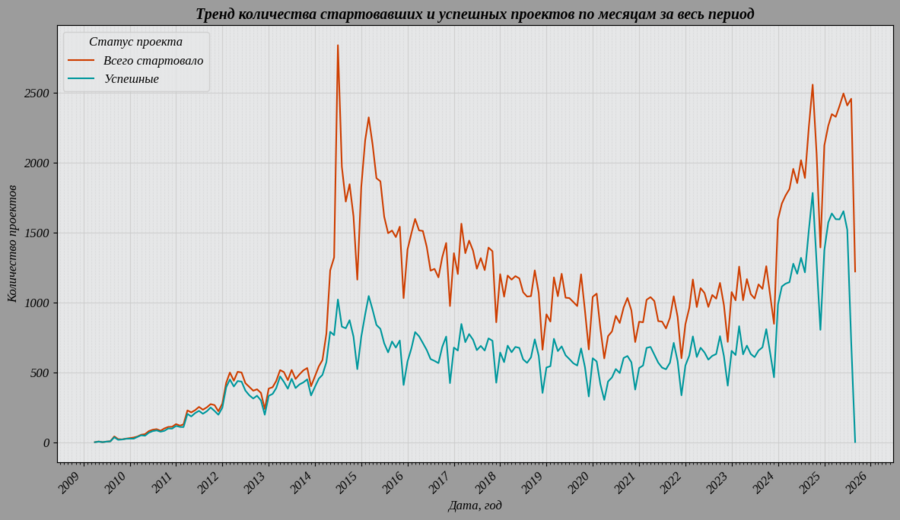 Файл с данными по всем проектам с 2009.04 по 2025.05 был взят с сайта Kaggle