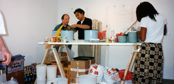 «Untitled (free/still)» выстроен как совместный приём посетителей риса с карри — пример партисипативности, требующей фасилитации и документации.