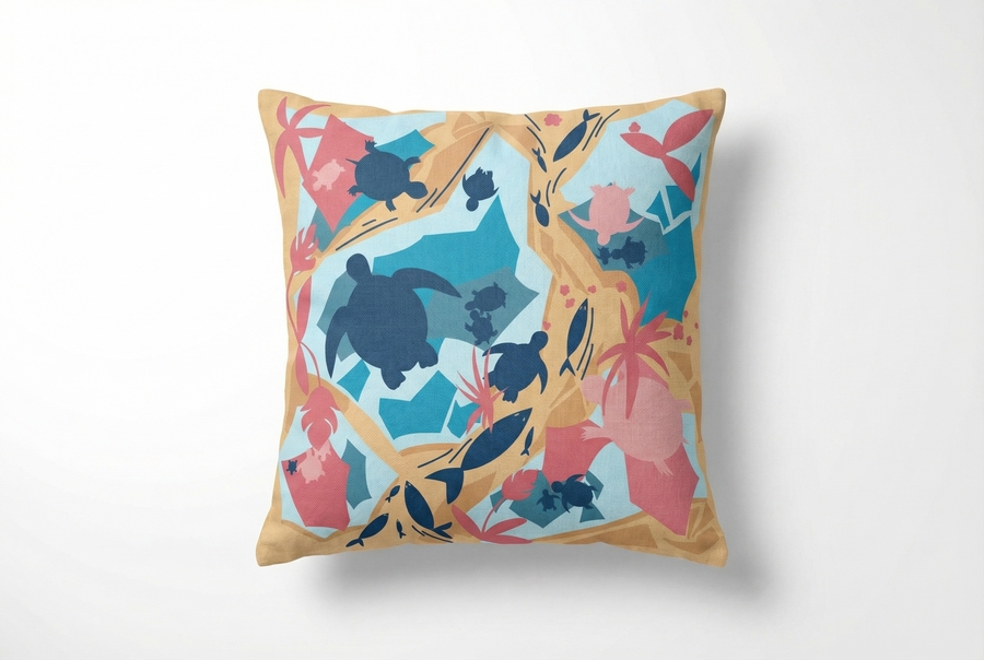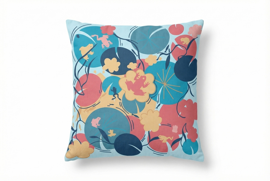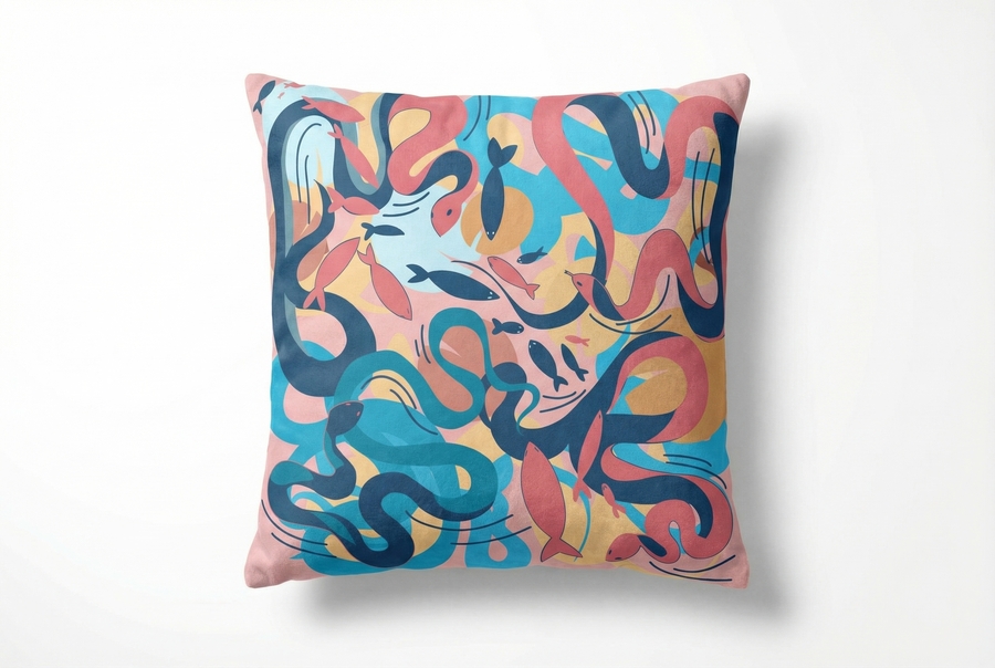 Серия наволочек для подушек на тему баланса и взаимосвязи в речной экосистеме. Никакой драмы хищника и жертвы, только моменты сосуществования, единства формы и среды, игры цвета и света.