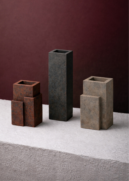 Вазы Kúbi представляют собой исследование индустриальной эстетики через голую конструкцию и монолитность.