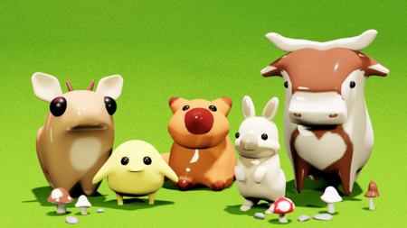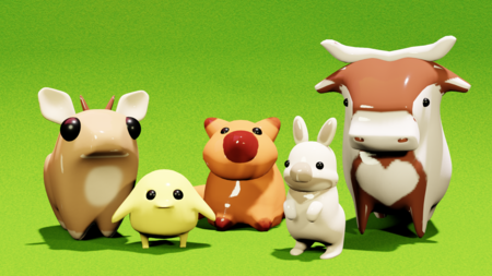 В данной коллекции представлены лесные и фермерские животные: оленёнок, бычок, лисёнок, зайка и цыпа.