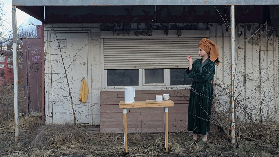 Каждое видео — отдельная комната: кухня, ванная, гостиная и спальня. Дальнейшая проекция соединенных воедино комнат создает визуальный образ игрушечного домика, позволяющий зрителю прочувствовать нарочитую кукольность и абсурдность происходящего.