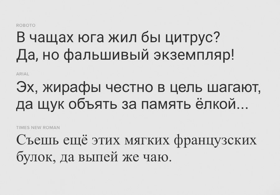 В итоге многие ранние западные кириллические адаптации оказывались формально корректными, но визуально чужеродными. Это особенно заметно на примере интернациональных систем вроде Helvetica, Times New Roman, Roboto, которые были рассчитаны на глобальный корпоративный рынок и должны были «унифицировать» внешний вид во всех языках.