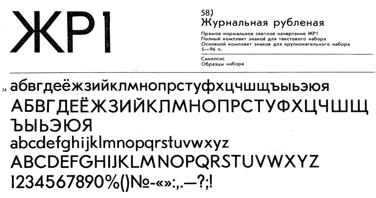 Были созданы такие шрифты, как «Литературная» (первоначально «Латинская»), основанная на шрифте Бертольда Латейниша 1899 года, «Журнальная» — представляла собой копию шрифта Excelsior (1931) компании Linotype, разработанного Чонси Х. Гриффитом, «Журнальная рубленая» и другие.