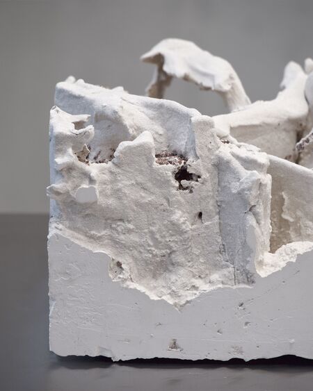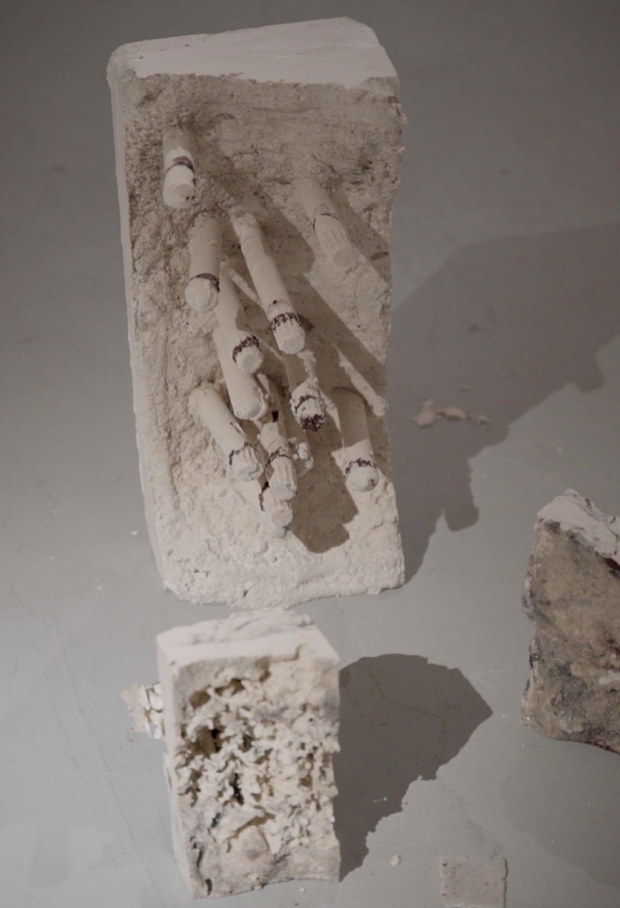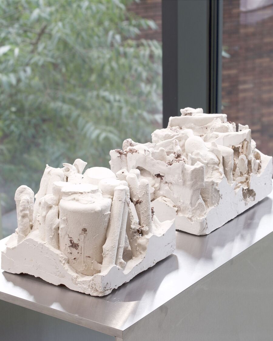 Результатом моей работы стали две серии гипсовых объектов. В первой я занималась множествами, рассматривала их плотность и паузы, образующиеся между отдельными событиями. Во второй — конструировала жесткие перегородки.