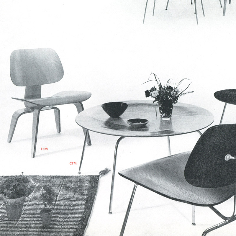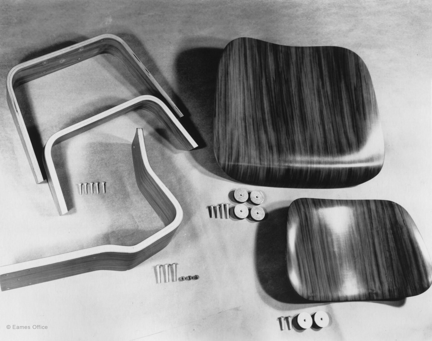 Архивные фотографии деталей стула LCW (Charles & Ray Eames, 1945)