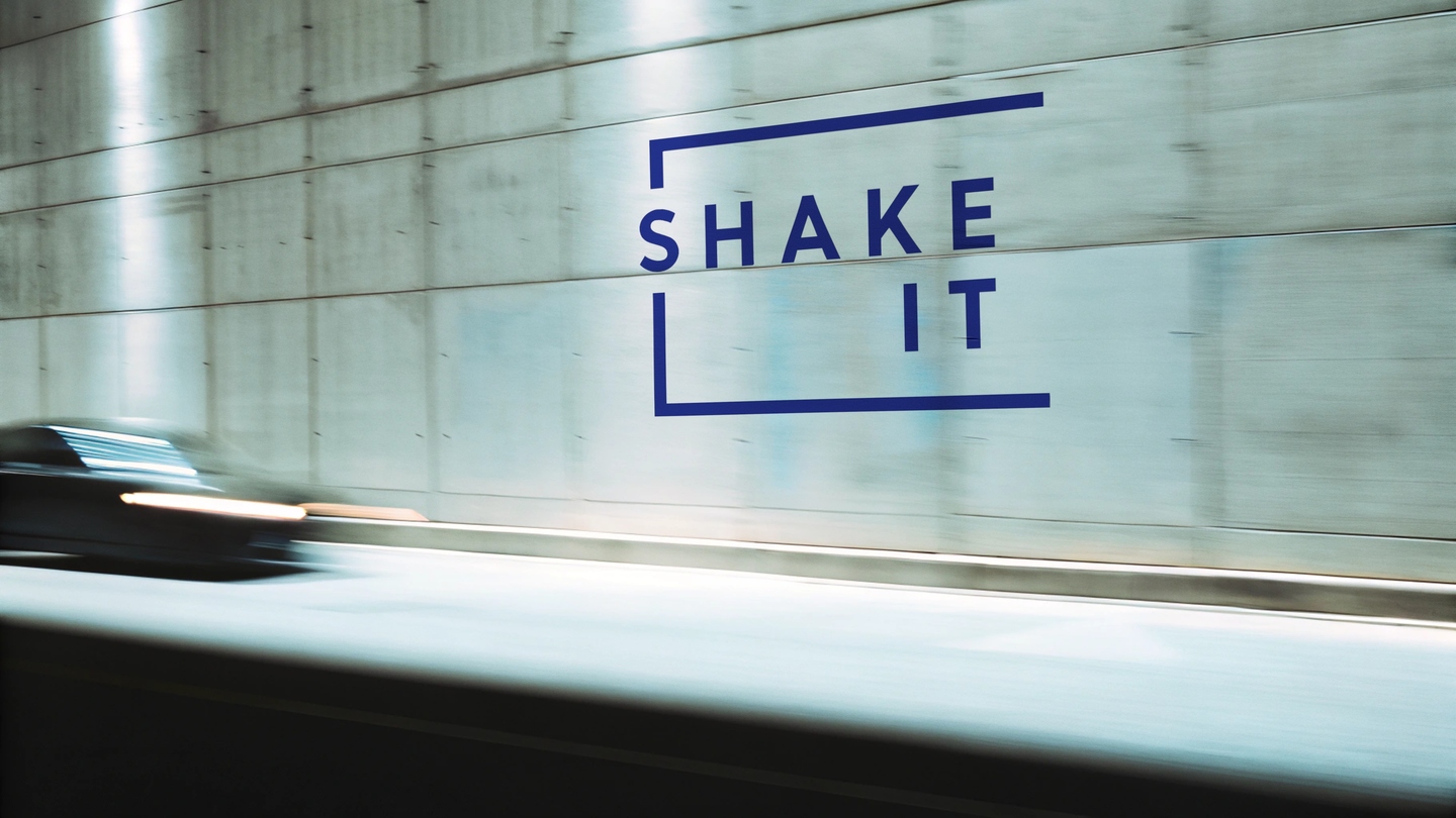 Промт — logo for the modern label «SHAKE IT», minimalistic, simple, flat, clear