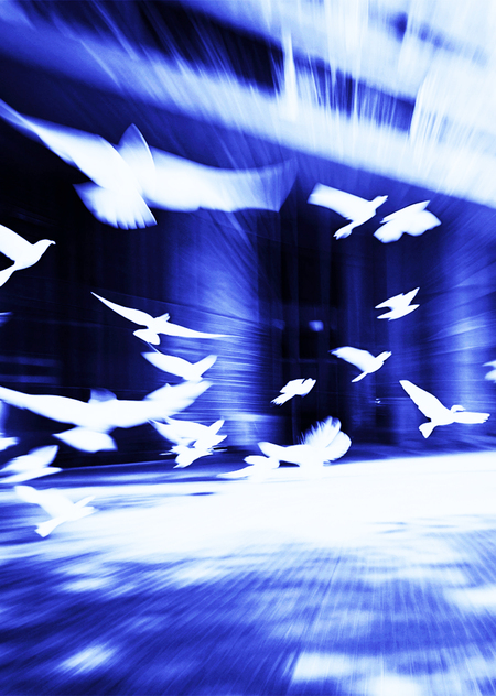 Промт — blue inversion, brightness, light blue background, many flying white doves, birds flying away, brightness, emotional explosion, birds in the foreground, close-up, background blur