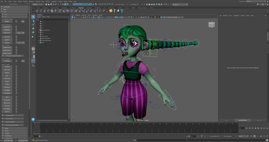 ▸ Пользуйтесь подсказками [?] плагина Advanced Skeleton. ▸ Проверяйте, что плагин просит отметить: vertex, edge loop, geometry. ▸ Built построит риг и контролы самостоятельно.