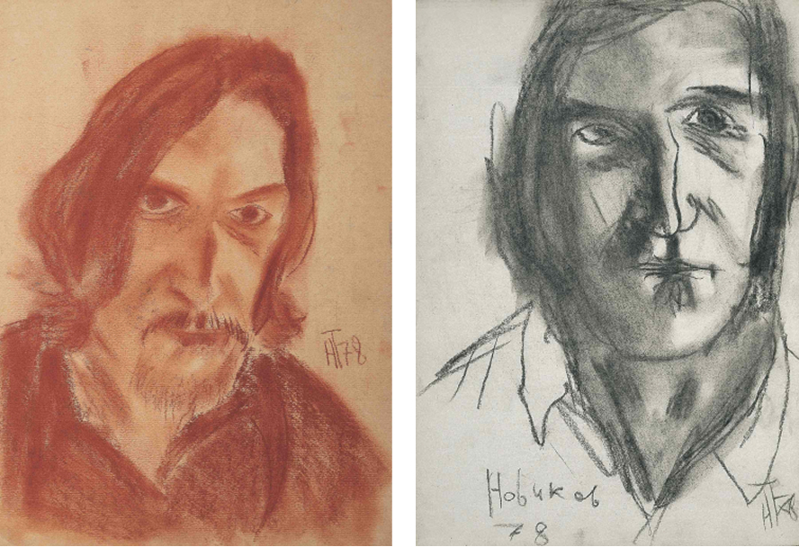 Слева: Михаил Горошко, Портрет Новикова 2, 1978 [3]; справа: Елена Фигурина, Новиков, 1980 [3]