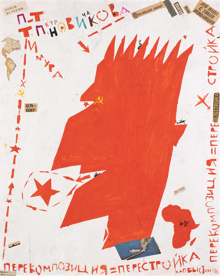 Слева: Тимур Новиков, Портрет Сергея Курехина, 1986 [1]; справа: Тимур Новиков, Поп-механика, 1985 [1]