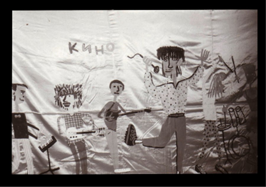 Слева: Тимур Новиков, Портрет Виктора Цоя, 1986 [1]; справа: Тимур Новиков, Кино, 1987 [1]