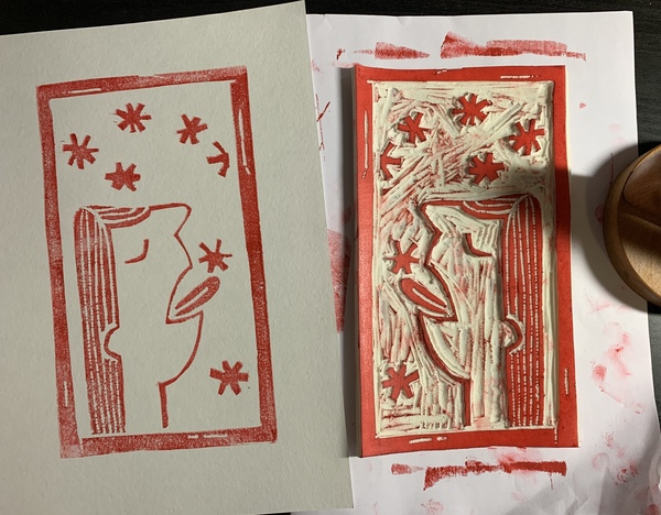 Зимняя, снежная линогравюра на бумаге формата А4, напечатанная ограниченным тиражом (10 экземпляров)