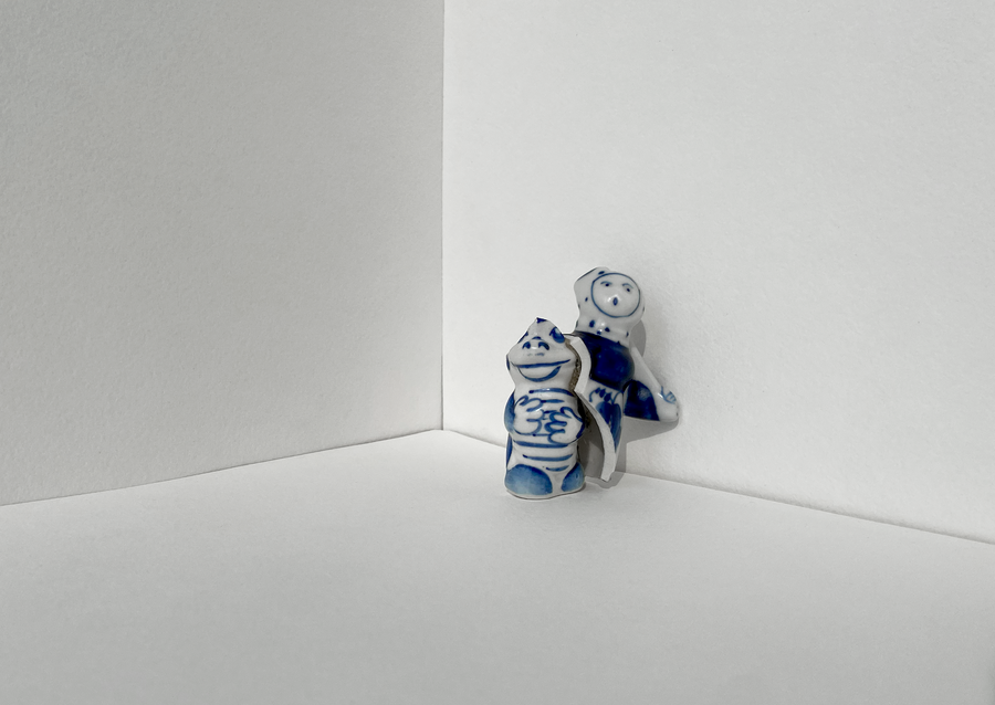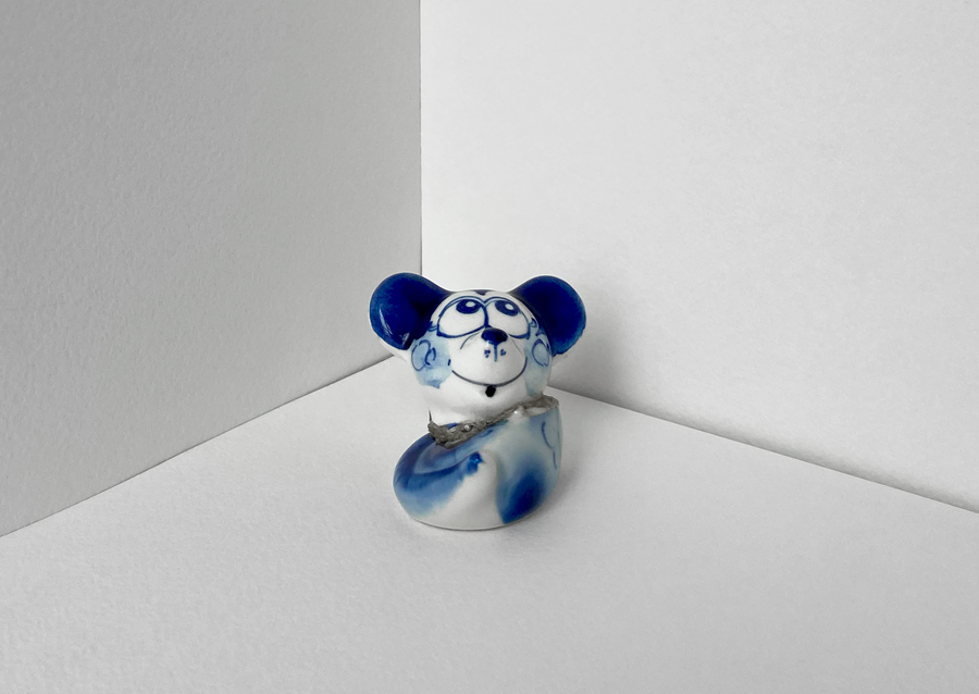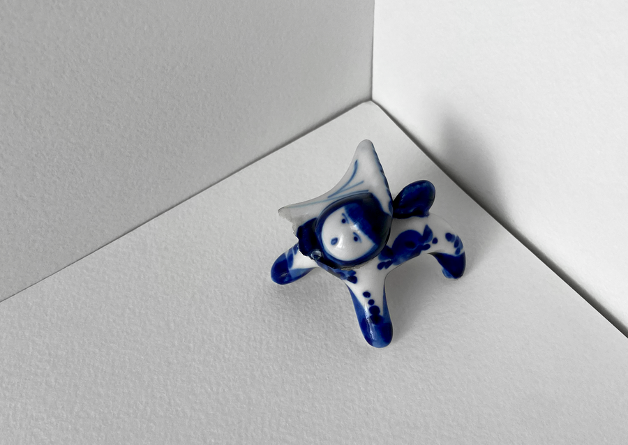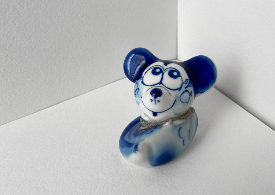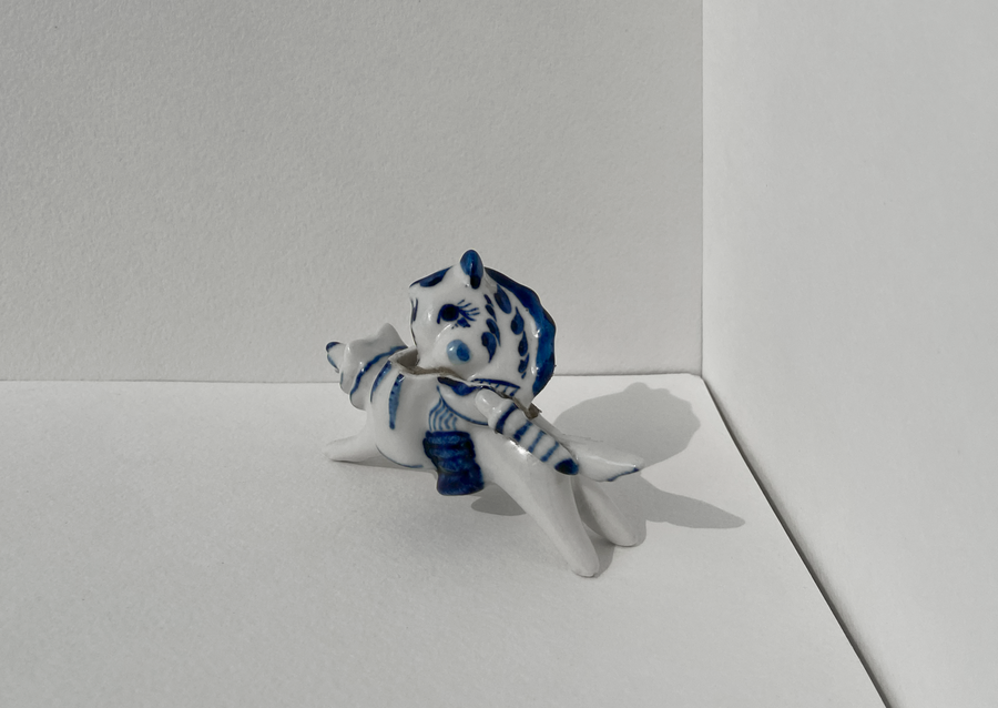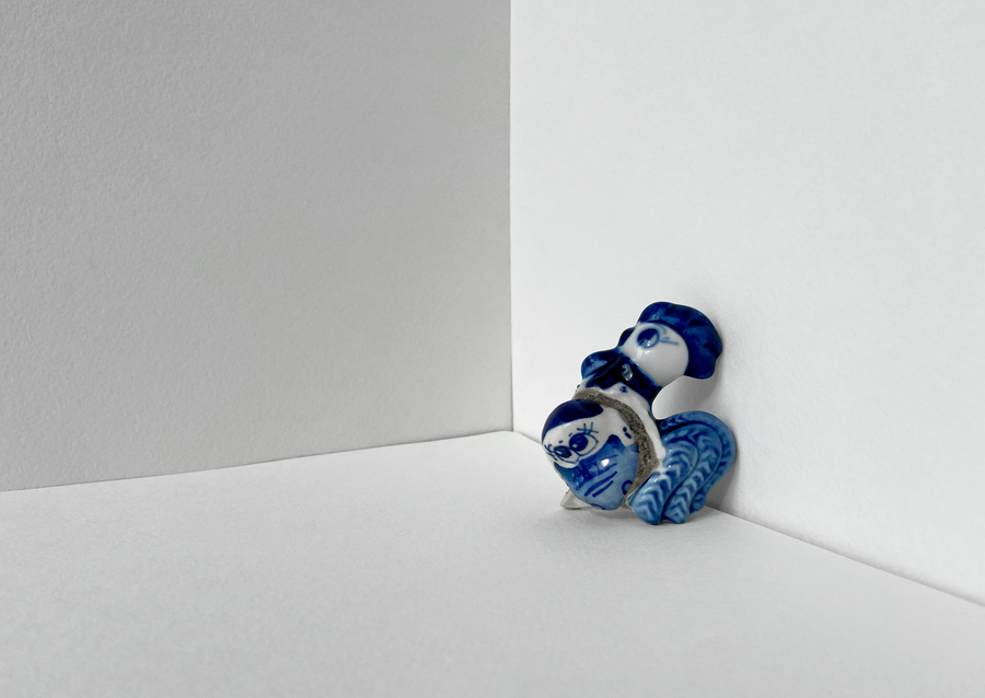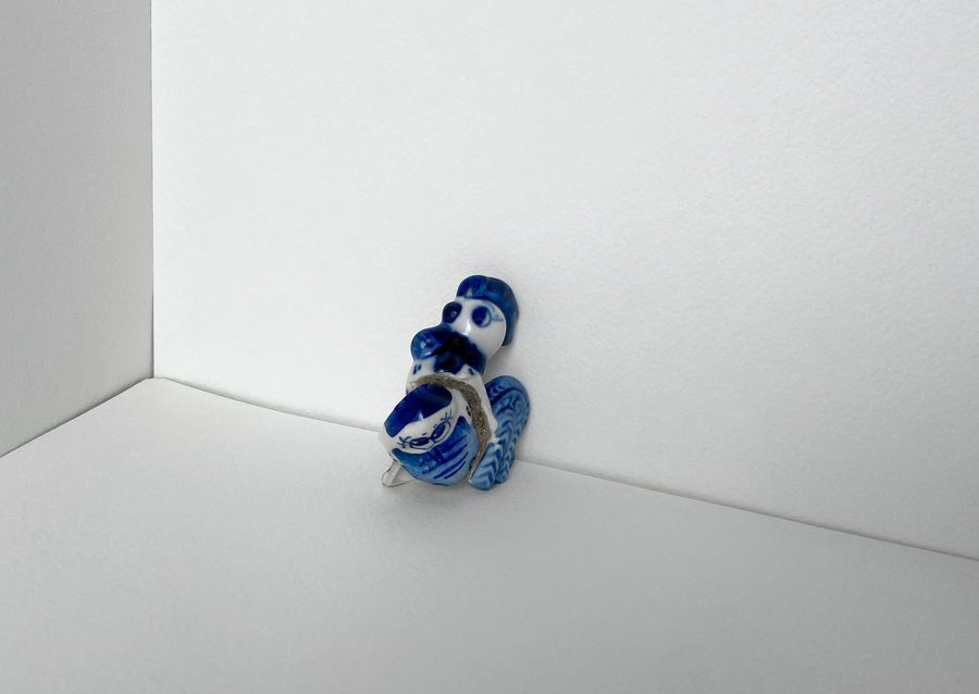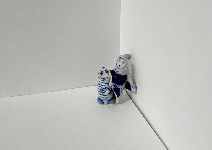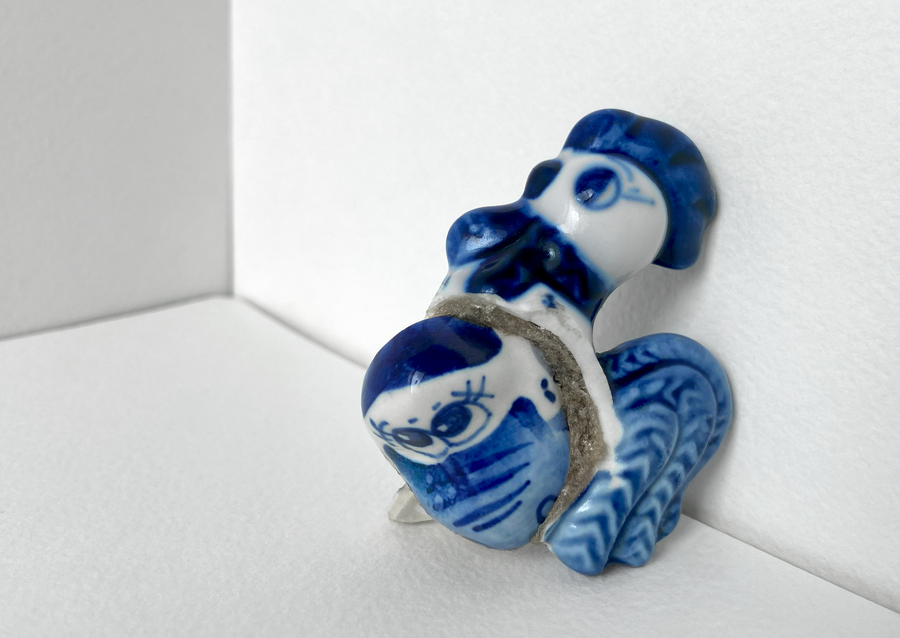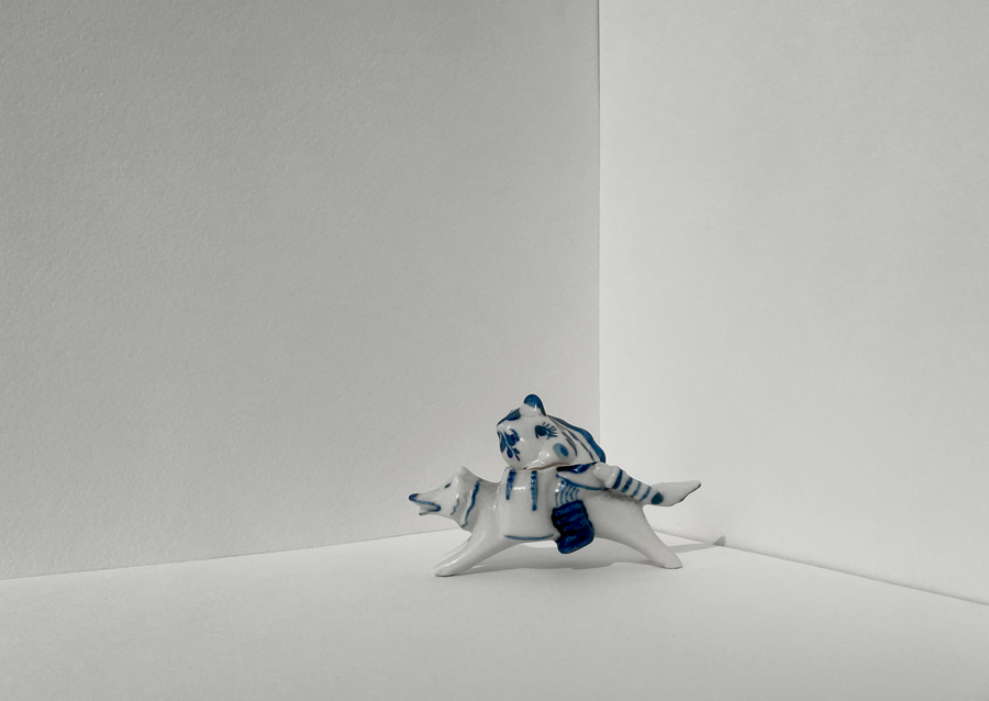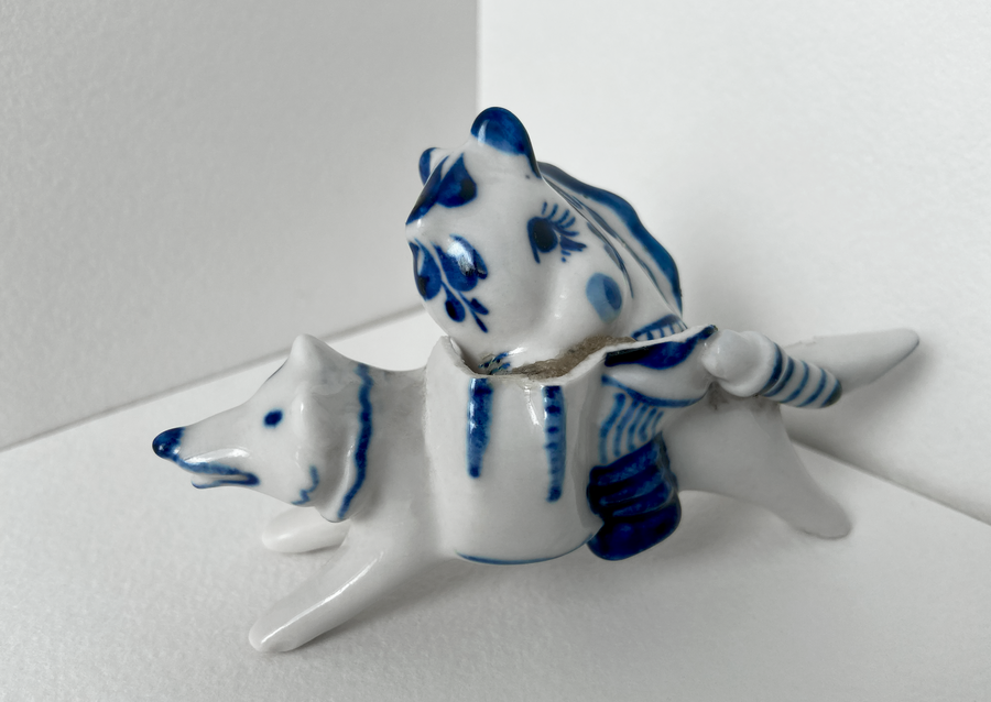 В своей серии арт-объектов я исследую тему памяти, традиций и то, как пересборка элементов прошлого становится основой для настоящего и будущего. Керамические фигурки, расписанные под гжель, основой для которых служат персонажи сказок и сцены деревенской жизни, являются символом прошлого, частью народной культуры, которая не меняется многие годы.