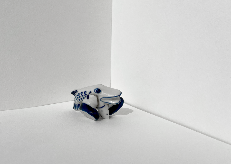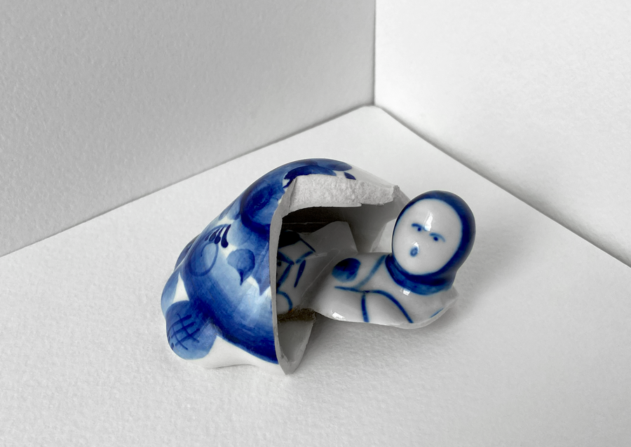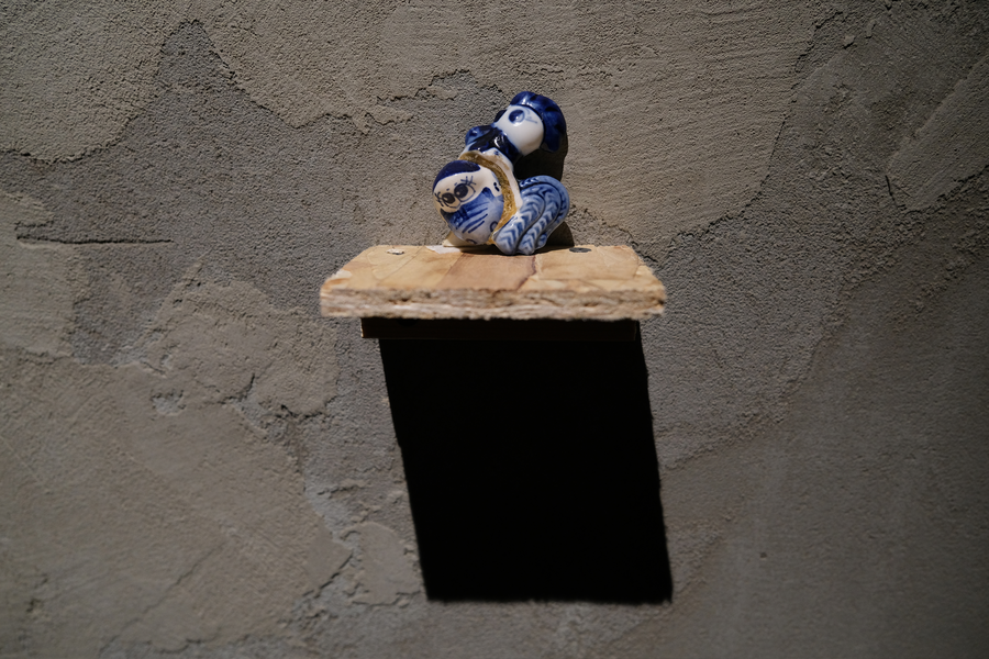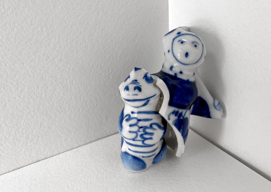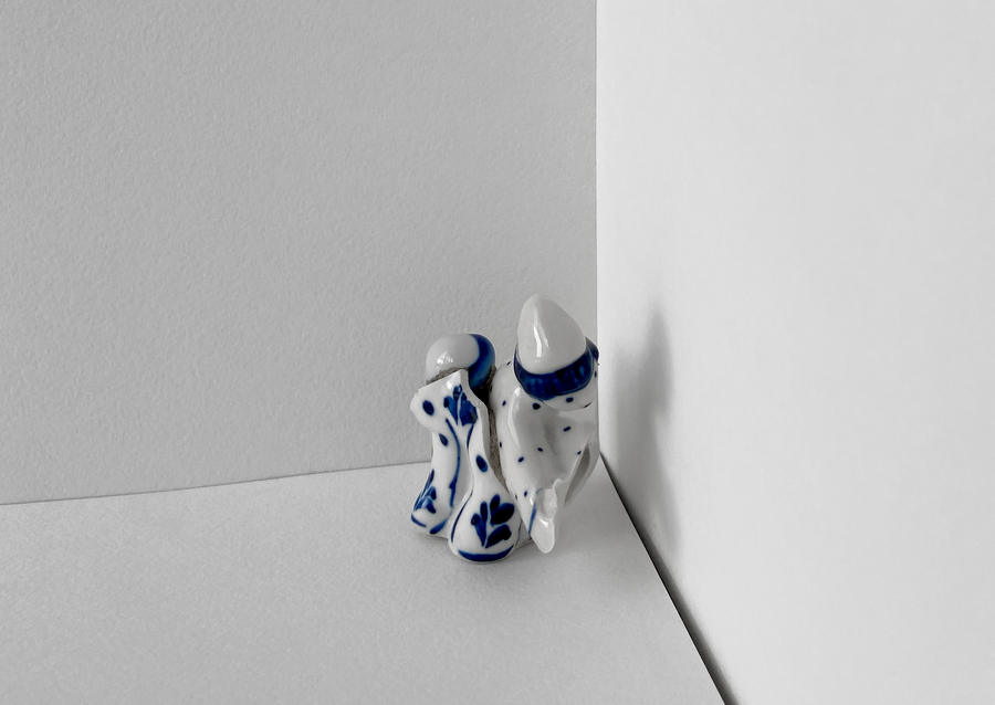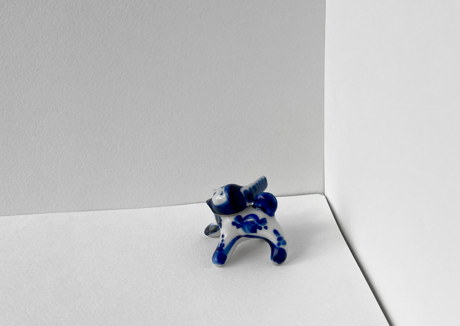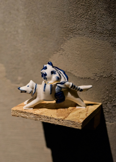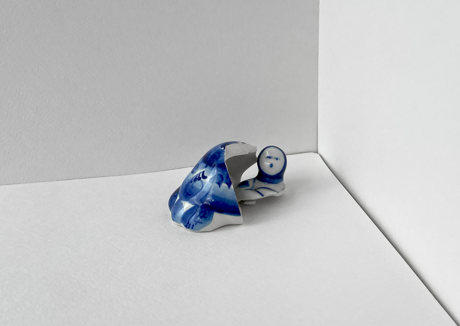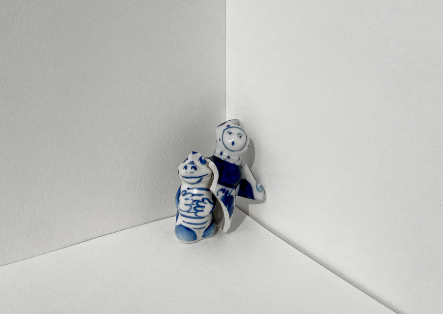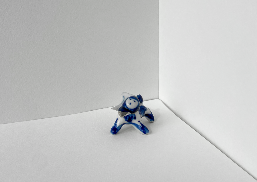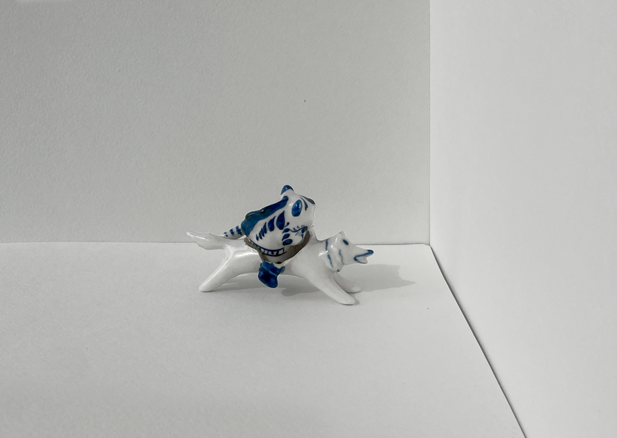 В своей серии арт-объектов я исследую тему памяти, традиций и то, как пересборка элементов прошлого становится основой для настоящего и будущего. Керамические фигурки, расписанные под гжель, основой для которых служат персонажи сказок и сцены деревенской жизни, являются символом прошлого, частью народной культуры, которая не меняется многие годы.