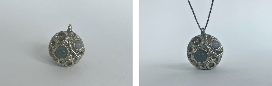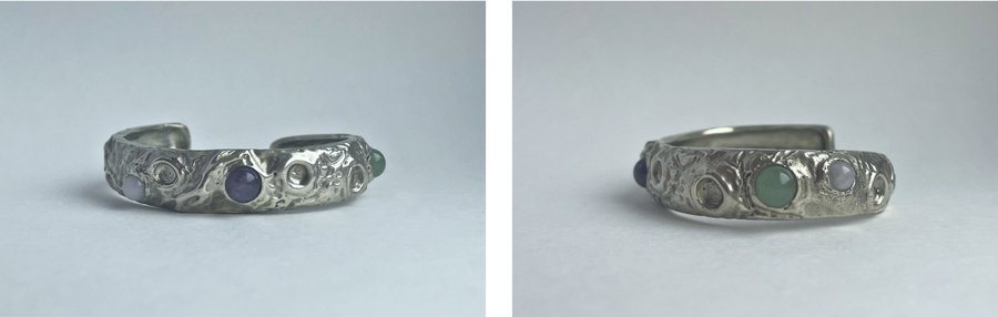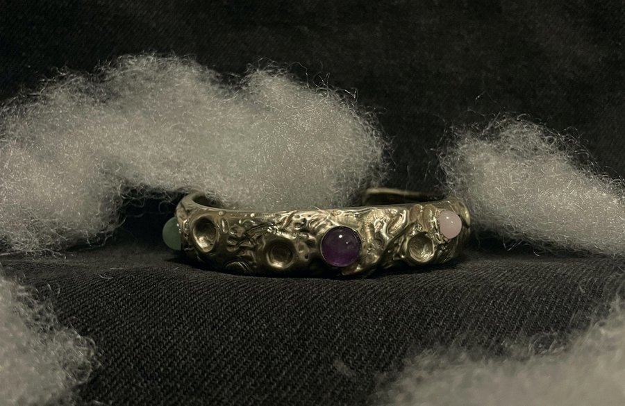 Чтобы Луна, мой символ удачи и чудес, всегда была со мной, я решила сделать серию украшений (браслет, подвеска и кафф) с лунной поверхностью.