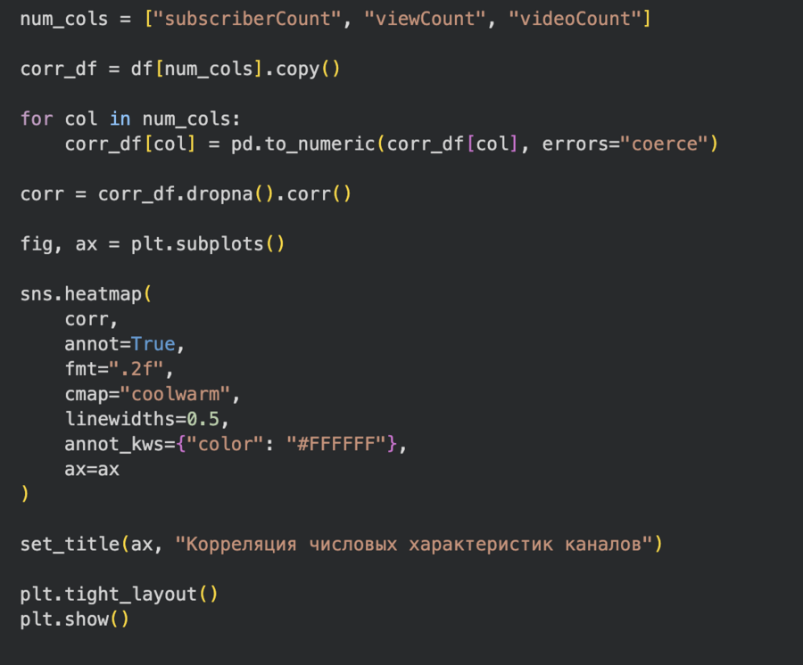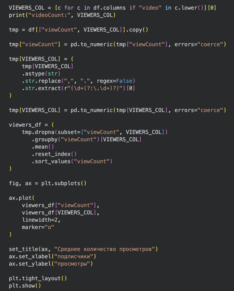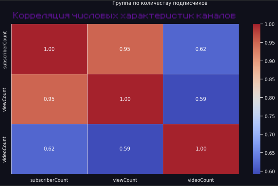 Выбранные данные позволяют анализировать количество подписчиков, видеоколичество, количество просмотров, как соотносится количество просмотров на подписчика