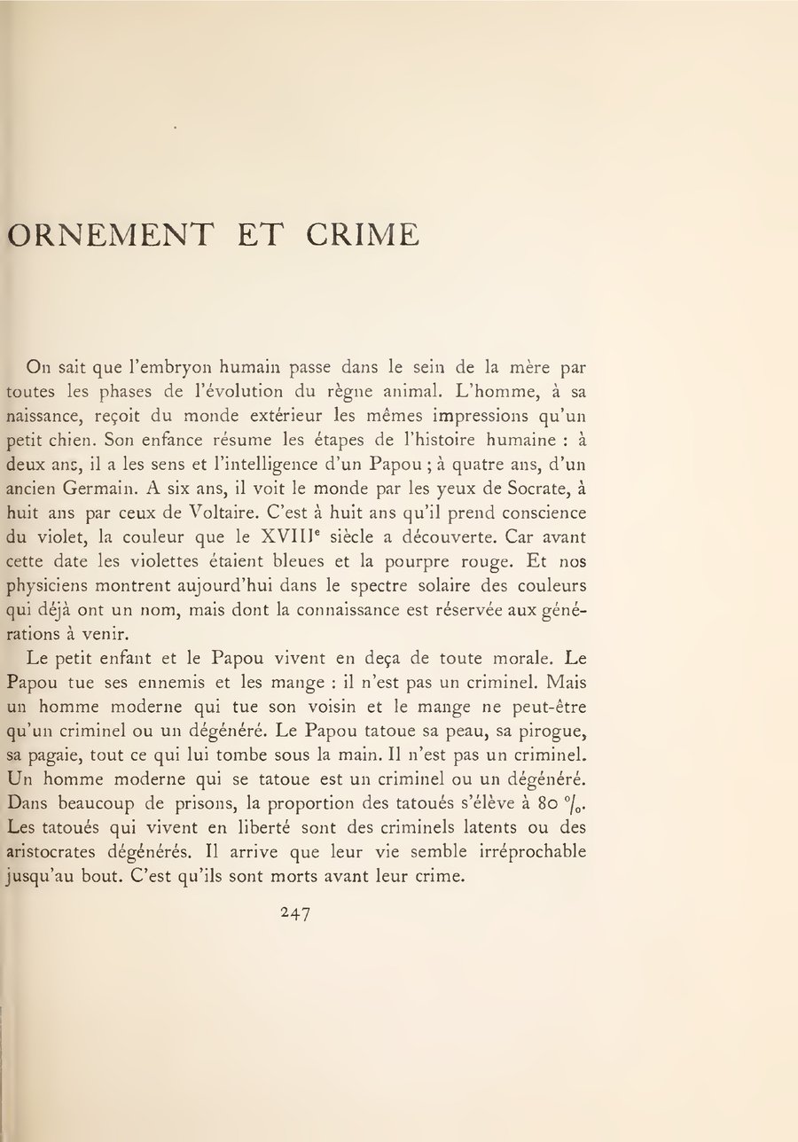 Адольф Лоос, Орнамент и Преступление, первая публикация в французском журнале Les Cahiers d’aujourd’hui, 1912