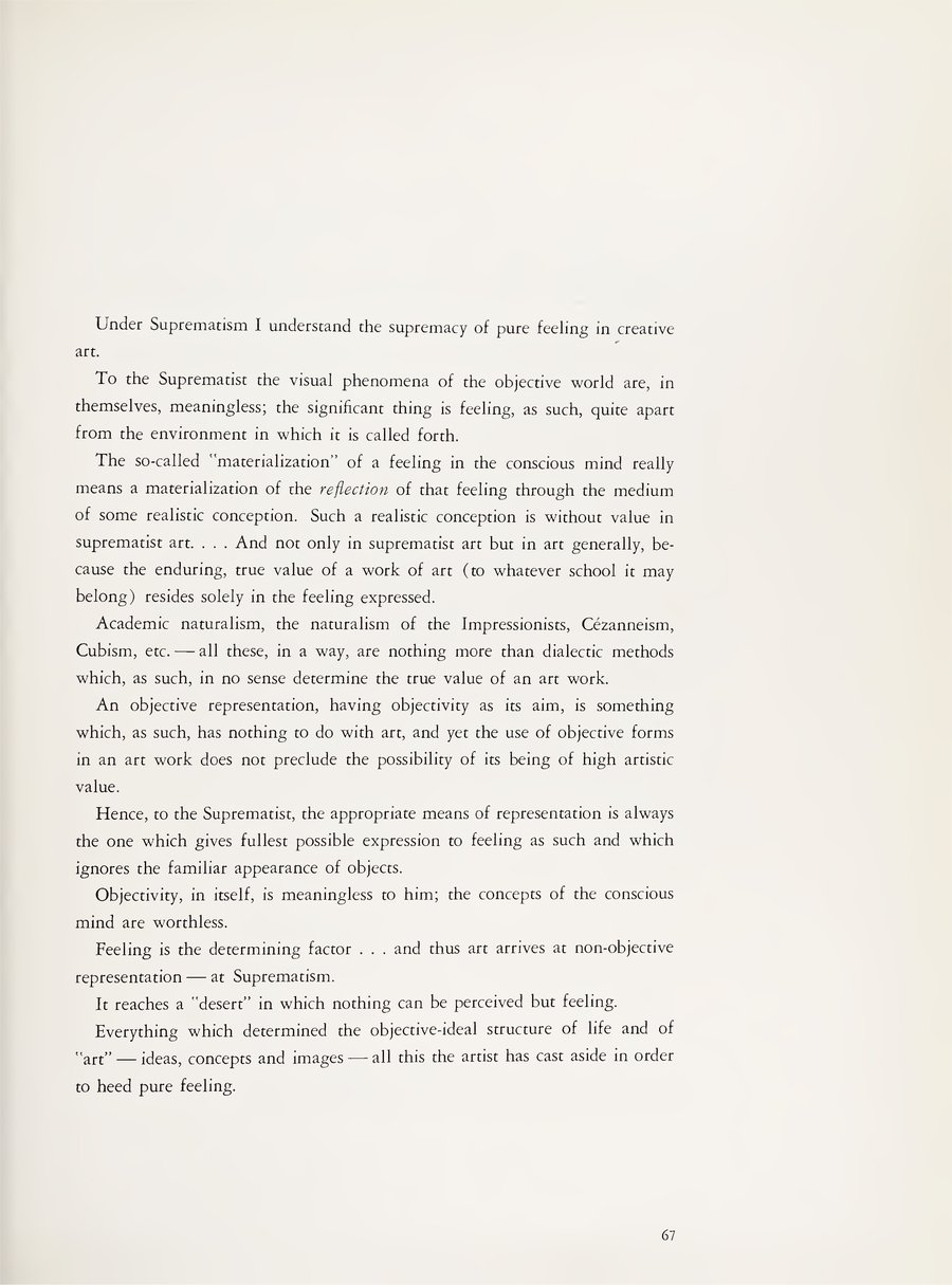 Казимир Малевич, Манифест супрематизма, первая публикация в журнале The Non-Objective World, 1927
