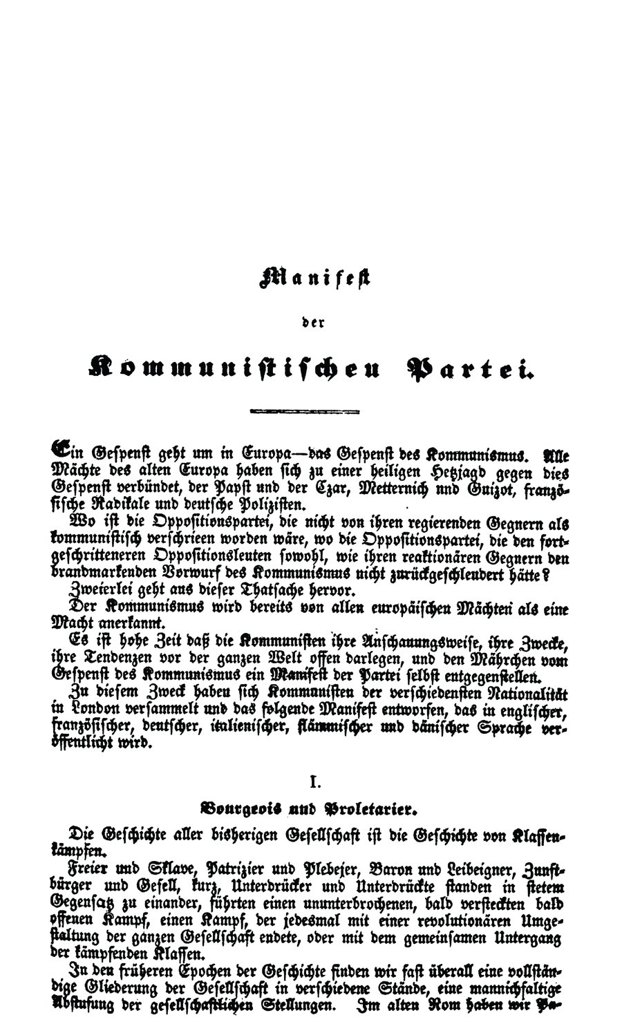 Карл Маркс, Фридрих Энгельс, Манифест Коммунистической партии, первая публикация 1848 г.