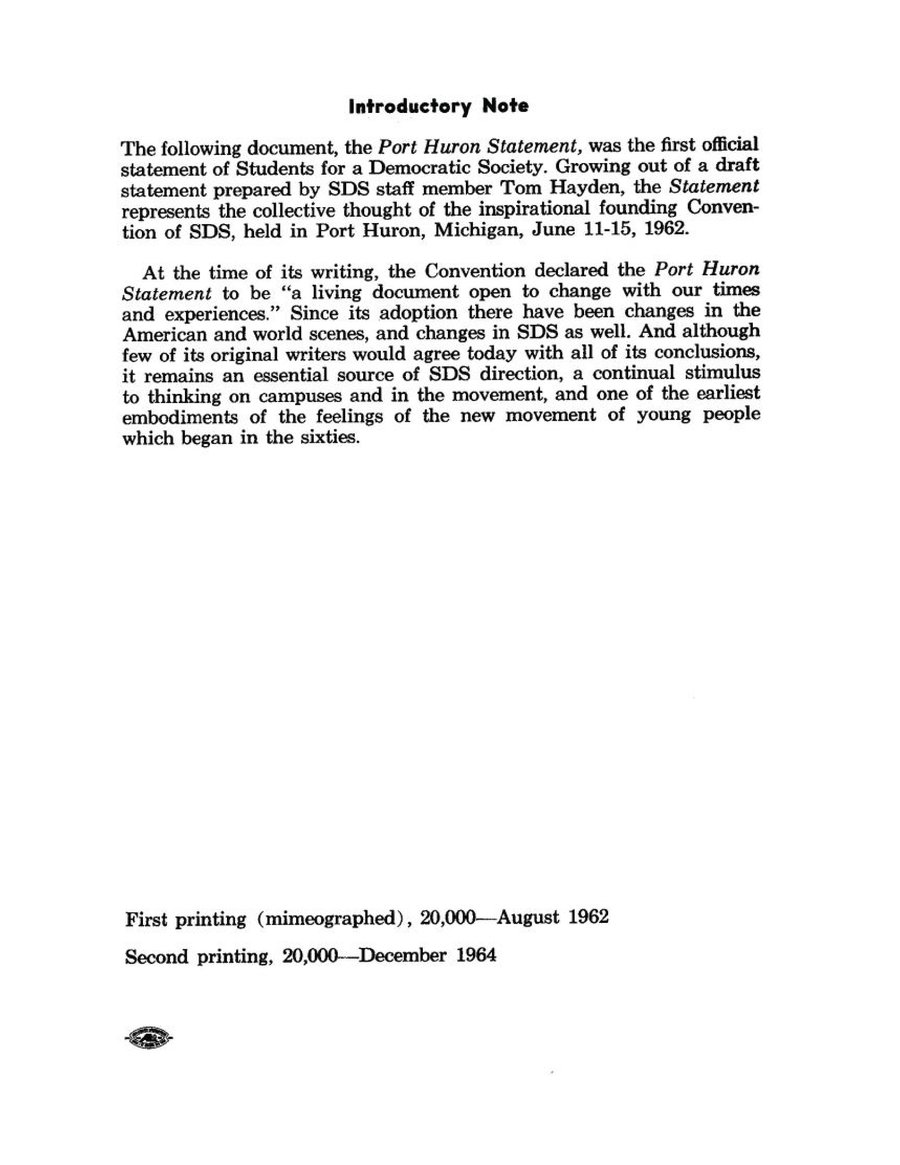 Том Хейден и движение «Студенты за демократическое общество», Заявление Порт-Гурона, 1962