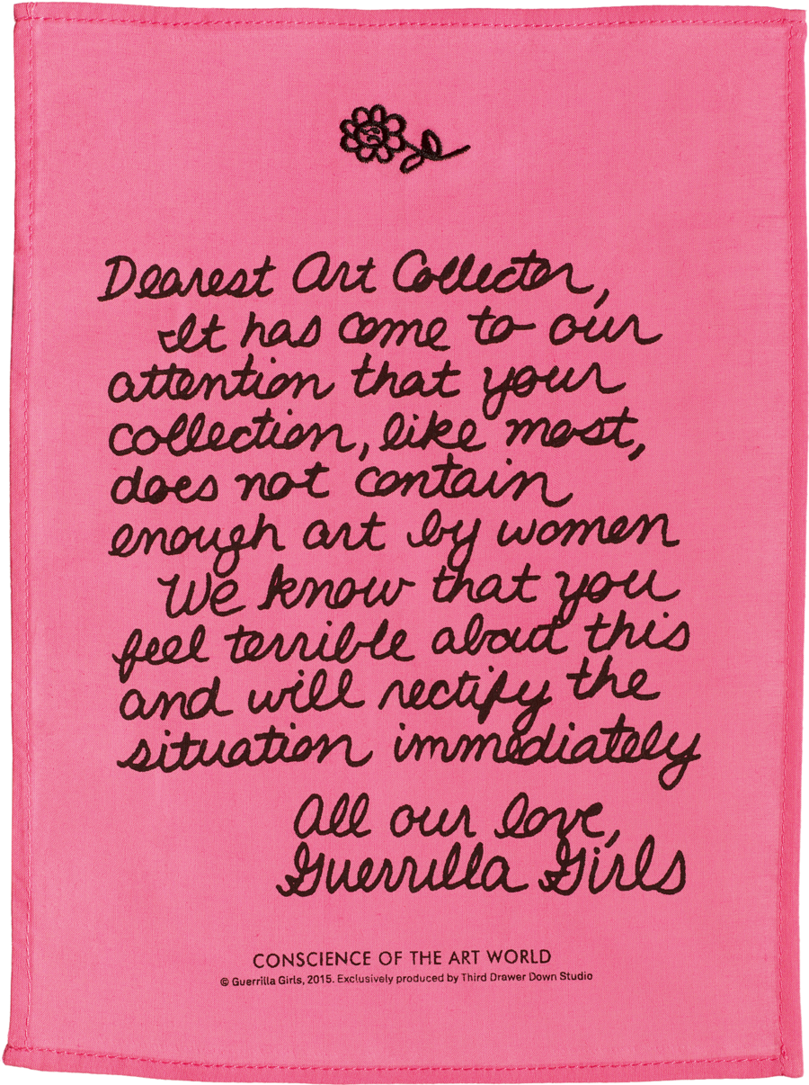 Guerrilla Girls — Dear Art Collector, Handkerchief // Tate Shop [Электронный ресурс]. URL: https://shop.tate.org.uk/guerrilla-girls-dear-art-collector-handkerchief/19008.html (дата обращения: 14.11.2025).