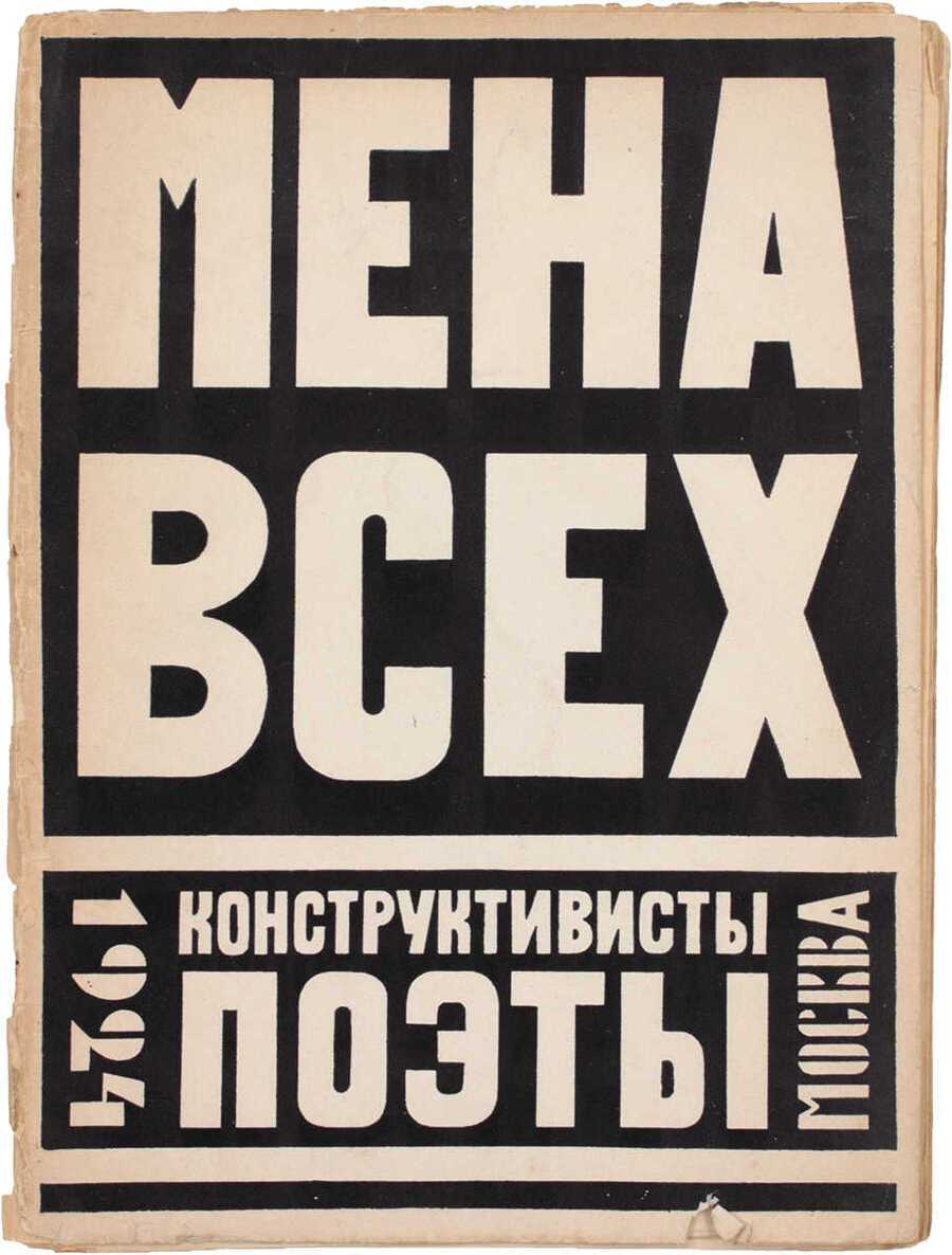 «Мена всех: Конструктивисты-поэты» — это программный манифест русского литературного конструктивизма, который радикально провозгласил новое направление в искусстве. Его статус манифеста определяется как внутренним содержанием, так и бескомпромиссным внешним оформлением. Внутри читатель сталкивается с «Декларациями» и теоретическими статьями авторов (Зелинского, Чичерина, Сельвинского), которые четко формулируют новые принципы создания поэтического произведения — концепцию «конструэмы» и утилитарный подход к тексту.
