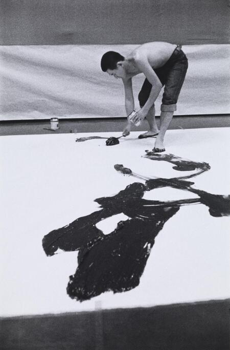 Кадзуо Сирага «Дорожки ногами», 1956. URL: https://www.tate.org.uk/art/artworks/otsuji-shiraga-kazuo-demonstrating-his-signature-painting-style-2nd-gutai-exhibition-p82277 дата обращения: 17.12.2025