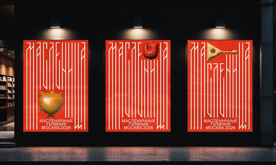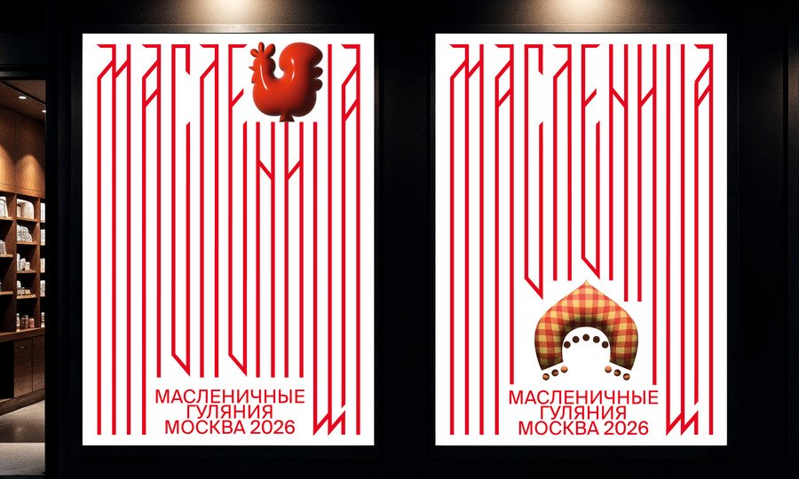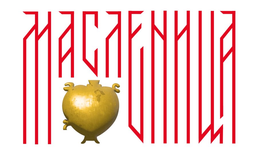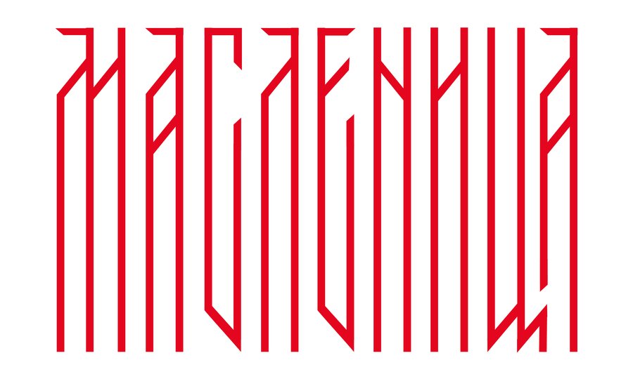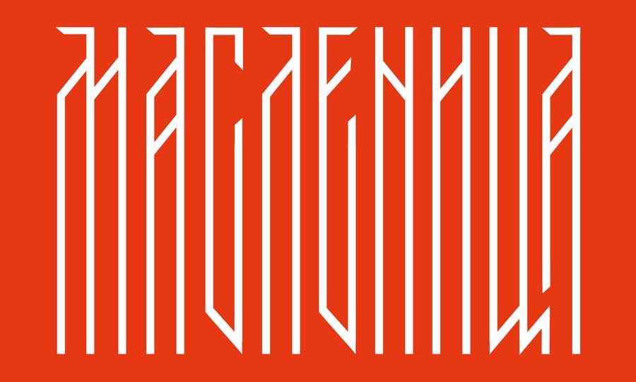 Старославянская вязь, символы праздника весны, огненный красный и снежный белый. Это Масленица!