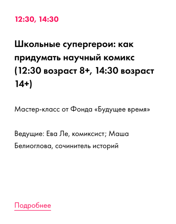 12 июля 2025 года состоялся фестиваль «What?!» о науке и искусстве, в рамках которого я провела мастер-класс по созданию комикса, для маленьких детей и для подростков и лиц старшего возраста.