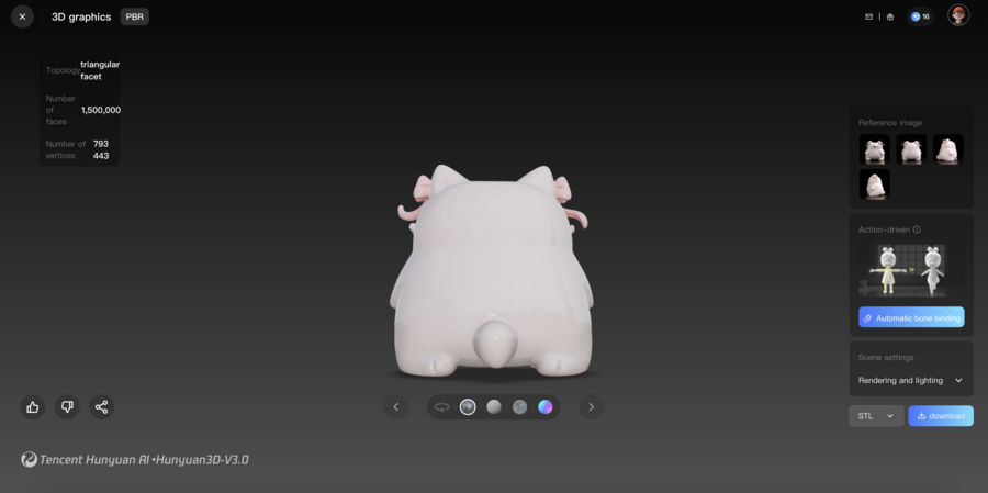 3. Генерация .STL моделей в Tencent Hunyuan 3D при помощи 4 ракурсов изображений.
