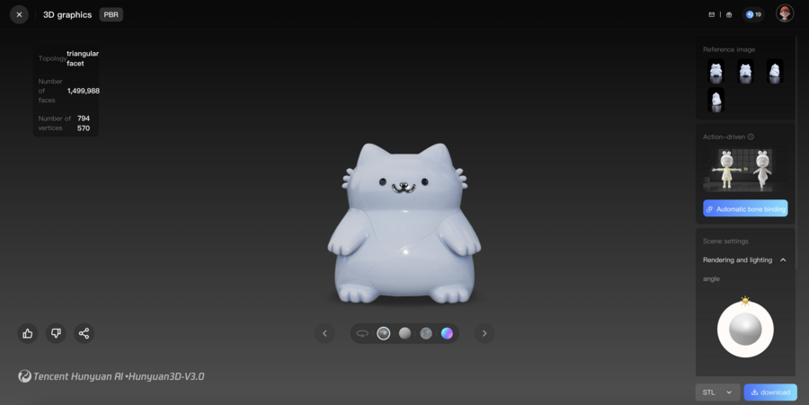 Ракурсы в 3D-программе Tencent Hunyuan 3D
