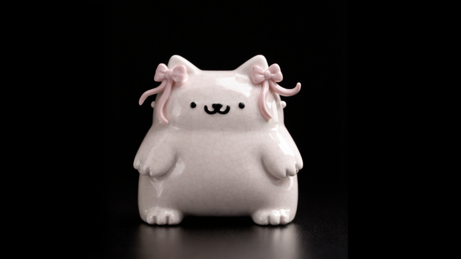 2. Генерация 4 ракурсов в ChatGPT со следующим промтом: Фотореалистичная фарфоровая фигурка в полный рост, выполненная по образу референсного изображения. Объект стоит фронтально, симметричная поза, нейтральное выражение. Материал — глянцевый художественный фарфор с тонкими микротрещинами, полупрозрачная глазурь, реалистичные отражения света, высокая детализация поверхности. Студийная предметная съёмка, чёрный бесшовный фон, мягкий рассеянный свет с двух сторон, лёгкий контровой свет для отделения силуэта. Камера на уровне груди, объектив 85 mm, малая глубина резкости, ultra high detail, photorealism, 8k, sharp focus, museum-quality porcelain figurine.