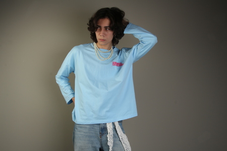 Каждый лонгслив имеет уникальную бирку с именем владельца, являясь основополагающим акцентом в дизайне.