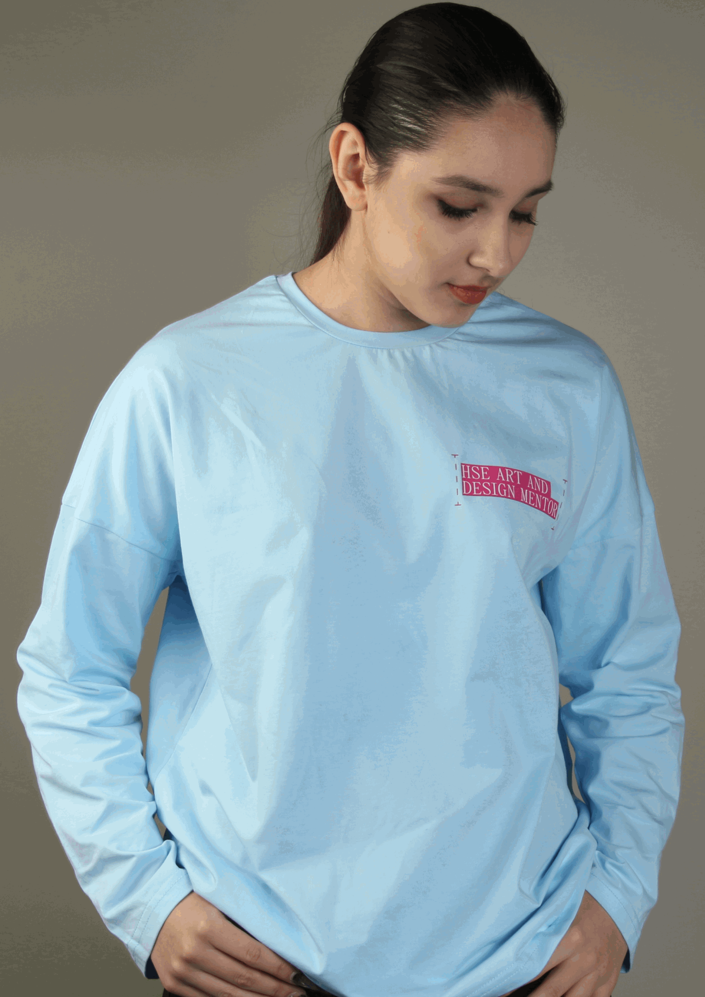 На передней части лонгслива логотип менторов Школы Дизайна 25/26, дублирующий дизайн брелоков, также разработанный менторами.
