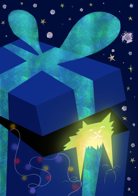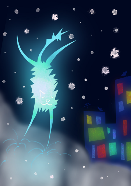Согласно нему, искрящиеся и светящиеся котики спускаются со звёздного неба с первым снегом, бегут и распространяют новогоднее настроение повсюду: и в лесу, и в городе. К Новому году они находят грустных людей, не хотящих праздновать, и поднимают им настроение.