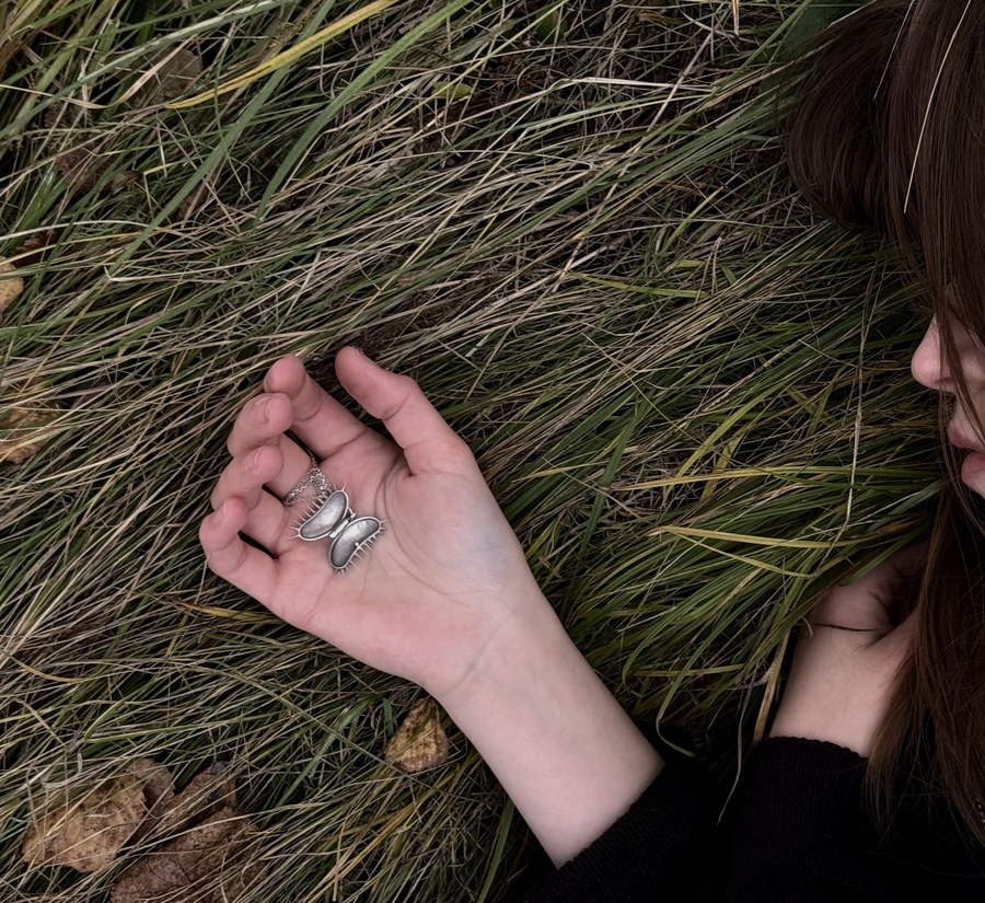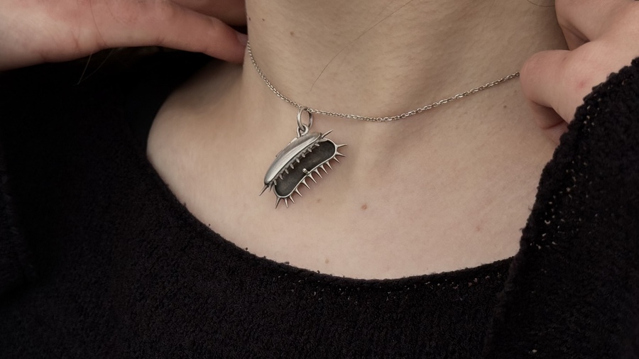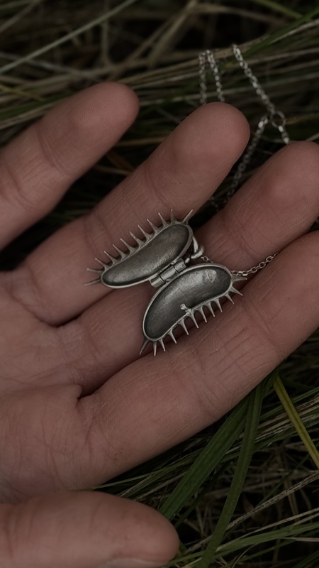 Кулон-локет «Мухоловка»: Смоделирован как двухстворчатый локет. Внутренний объём рассчитан под маленькую «тайну»: фото, крошечную записку. При этом тонкие стенки делают его невесомым.
