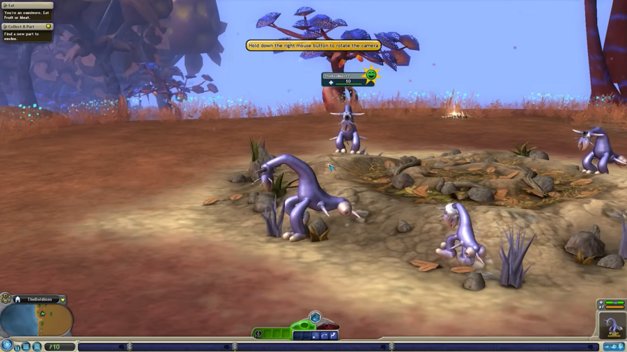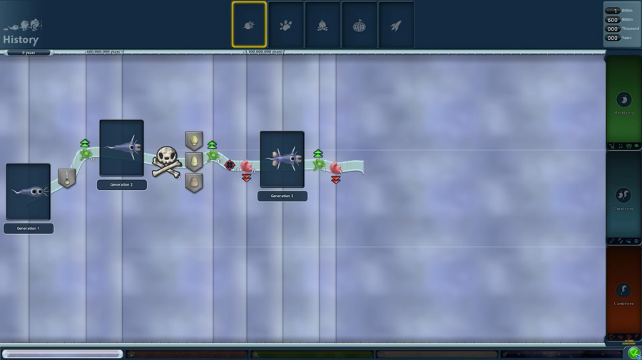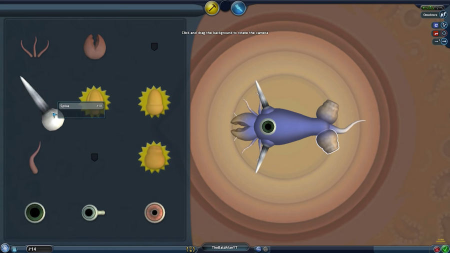 С первого же этапа появляется возможность создать, кастомизировать и назвать свой уникальный образ клетки, а также выбрать путь, по которому она будет идти: плотоядный, травоядный или всеядный. Иными словами, этап предполагает имитацию: игрок создаёт образ своего организма, решает, каким он хочет быть, и придерживается своего выбора.