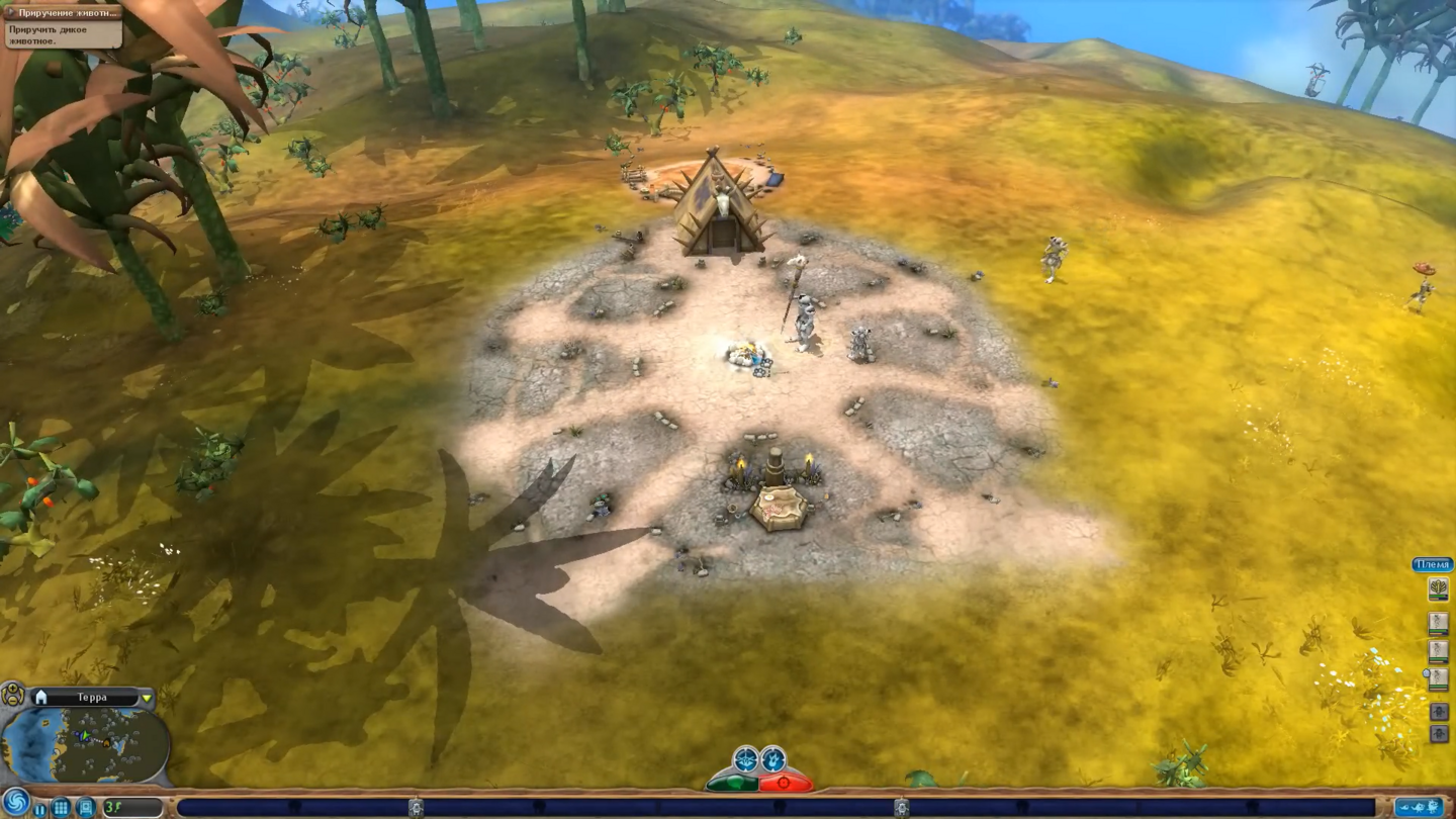 Кроме того, на этом этапе в центре племени есть костёр, нажав на который, выбранные существа начнут исполнять танец вокруг. Эти действия ни к чему не приводят и ничего не дают, но они добавлены в игру, потому что подобный опыт ритуального экстаза — основополагающий для хаотичного первобытного общества.