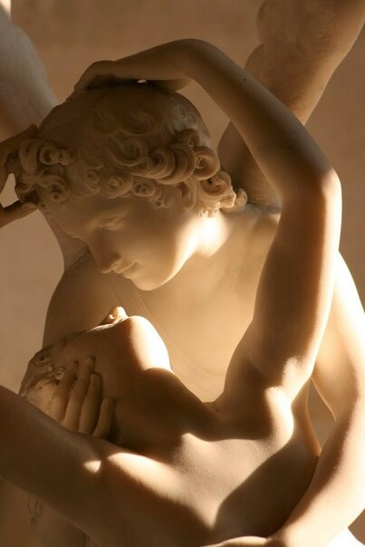 Момент, когда смертная девушка просыпается от поцелуя своего возлюбленного, сына Венеры, был запечатлен Антонио Кановой. Скульптор создал изящную композицию, которая наполнена удивительным спокойствием. Скульптура передает нежность и романтику момента воссоединения влюблённых, создавая атмосферу любви и надежды. Изящные линии и сложные позы фигур вызывают восхищение, а мягкость форм и идеально проработанные детали создают чувство умиротворения.
