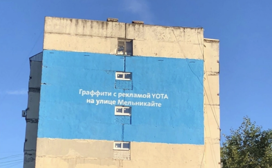 В 2018 Yota сделала серию реклам, где об услугах их компании не говорилось ни слова, лишь были узнаваемые цвет, шрифт и логотип, а по центру располагались надписи, описывающее происходящее.