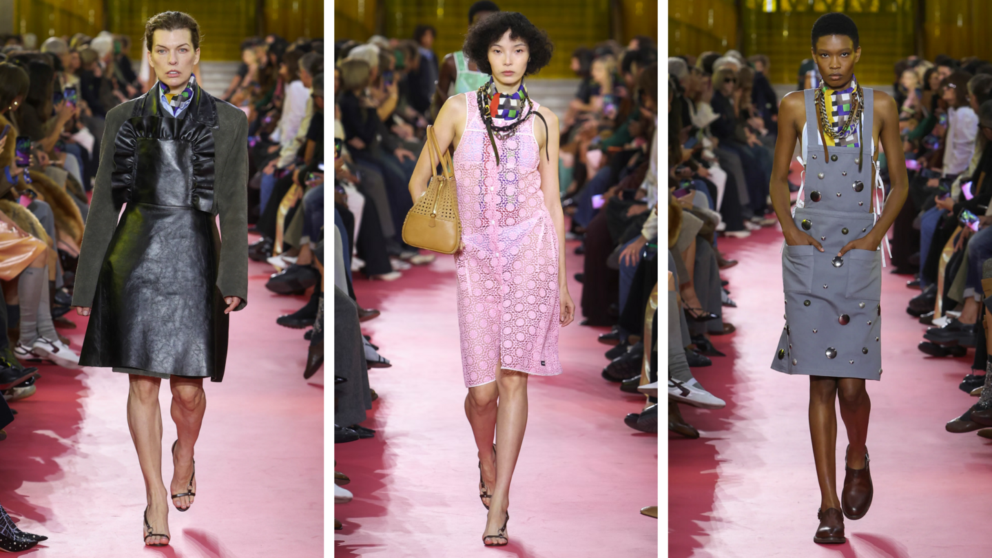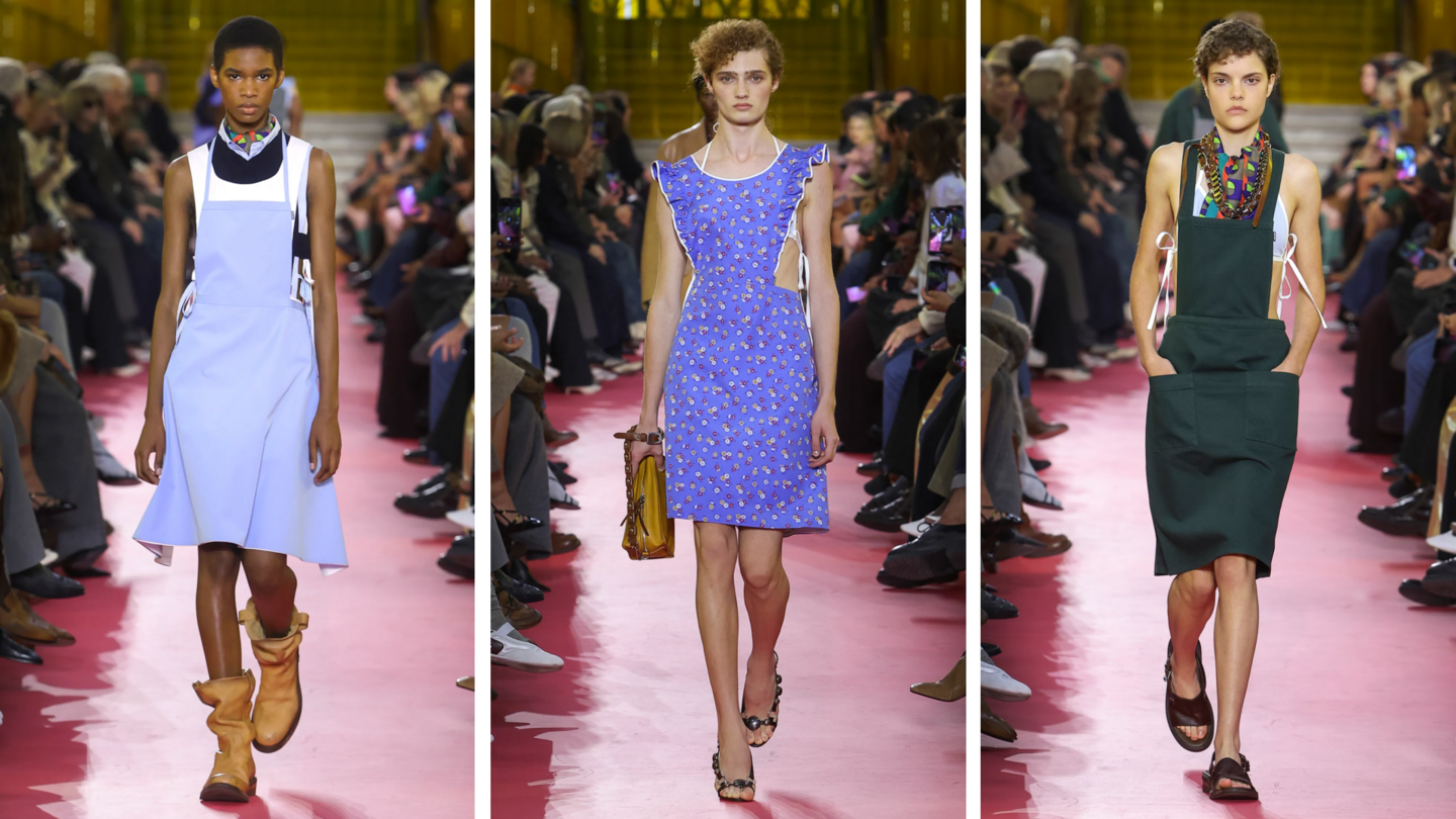 Недавний показ Spring/Summer 2026 был построен вокруг одного из элементом рабочей одежды, преимущественно относящийся к женщинам. И это фартук, который трансформировался из утилитарного предмета в декоративный, благодаря ярким оттенкам, необычным фасонам, вышивке, брошам и другим деталям.
