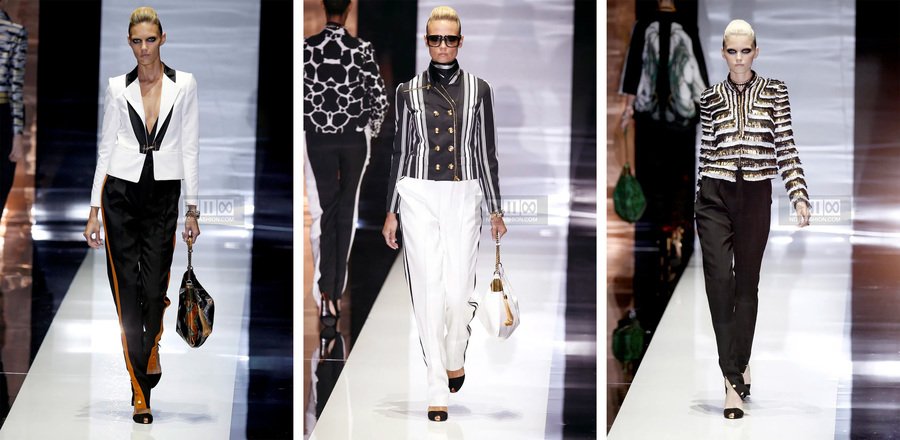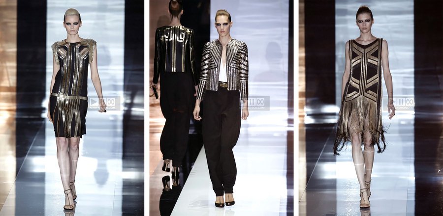 Под руководством Фриды Джаннини бренд Gucci представил коллекцию, вдохновленную джазовой эпохой и стилем ар-деко. В ней присутствовали смелые геометрические узоры, блестящие материалы и платья с низкой талией, что отсылало к свободному стилю женщин-флэпперов. Коллекция подчеркнула баланс между винтажным духом и современной эклектикой.